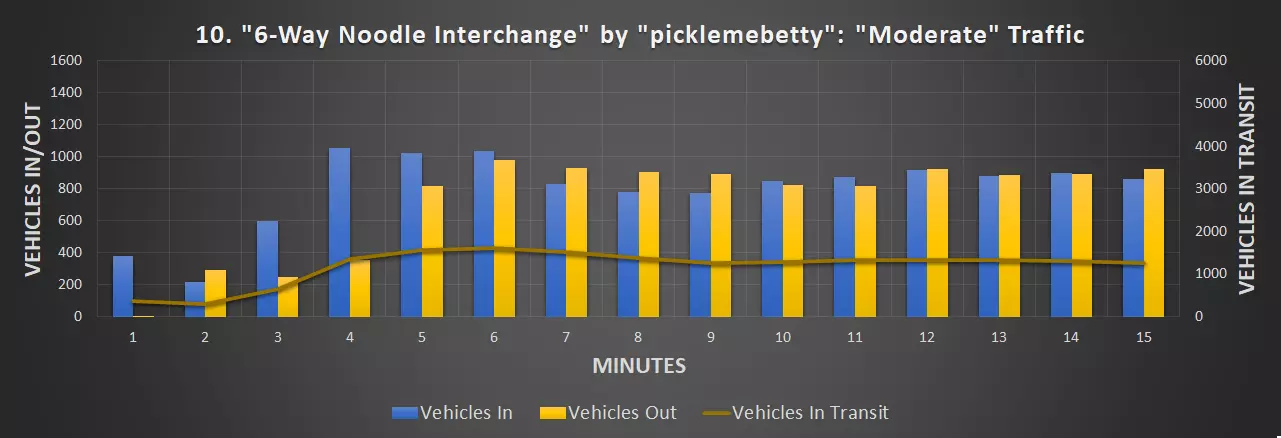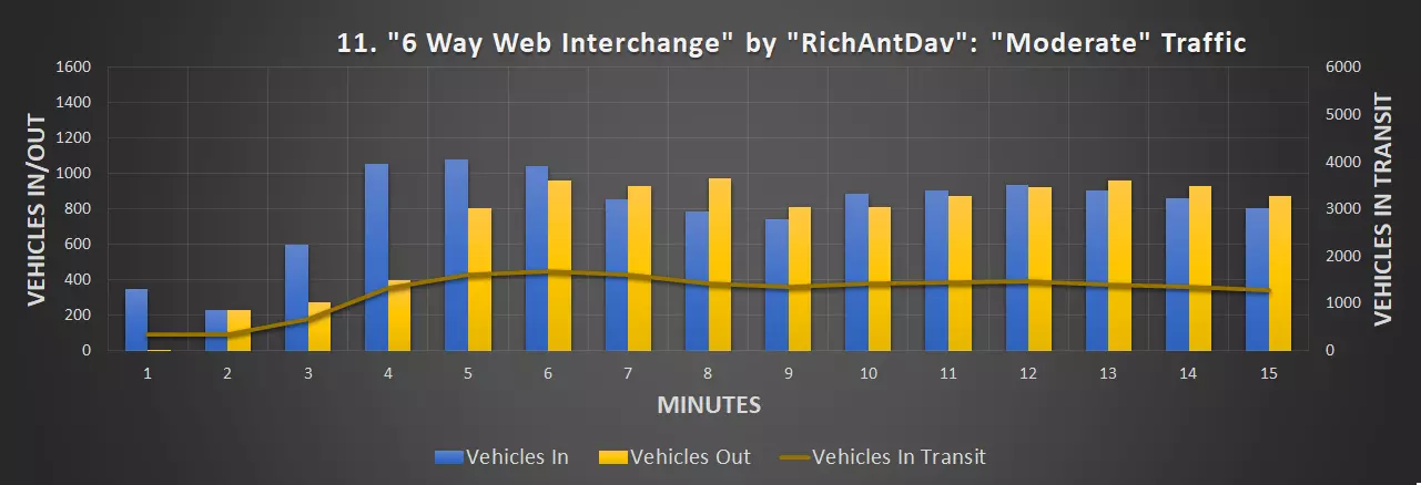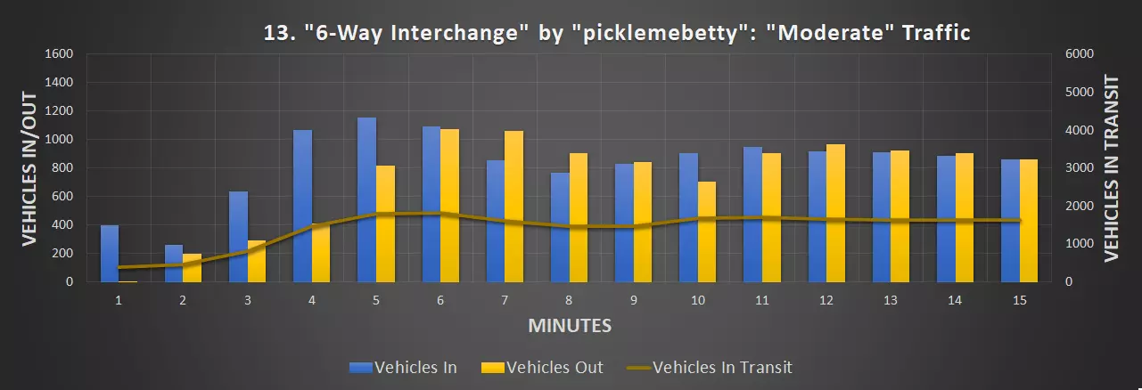 视频:5分38秒 创作者:picklemebetty 尺寸:64×64 成本:90708 等级:3 资源:Steam上的资源 道路:三车道高速公路 峰值每分钟车辆数:981辆/分钟(中等交通量),864辆/分钟(繁忙交通量)