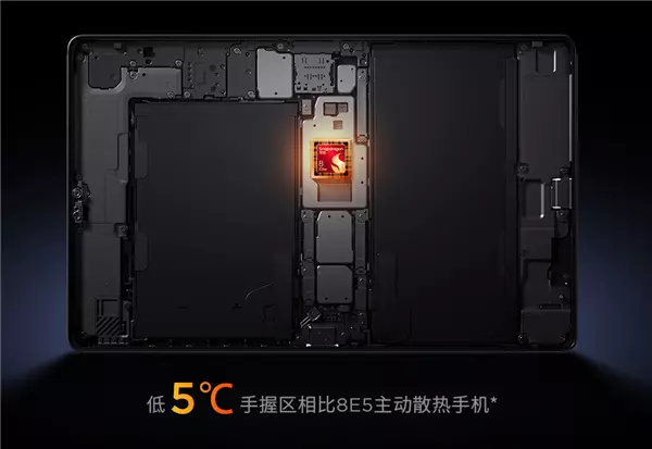 新机搭载第五代骁龙8至尊版芯片,配备LPDDR5T满血内存(10667Mbps)与UFS 4.1 Pro满血存储,安兔兔综合跑分突破453万分, 成为目前性能最强的安卓小平板。 为保证性能持续释放,Y700五代采用17353mm²VC均热板与第三代乾坤散热架构,通过中置散热设计将热源远离握持区域,提升长时间游戏时的舒适度。