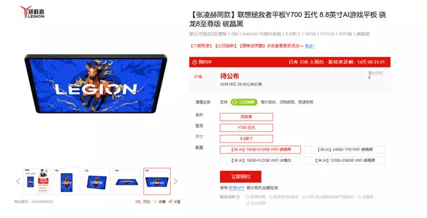 快科技3月4日消息,今日,联想拯救者宣布,拯救者平板Y700五代将于3月18日19:00正式发布。 目前,新品已在联想官网开启预约, 提供12GB+256GB、16GB+512GB、24GB+1TB三种存储版本。