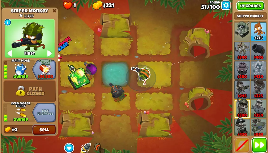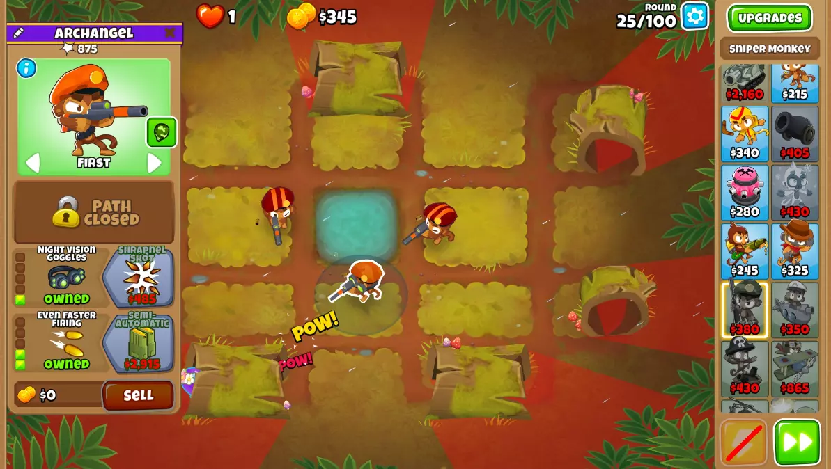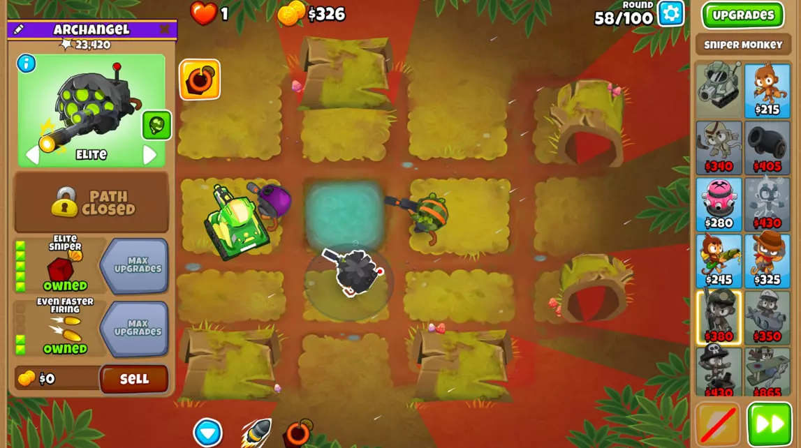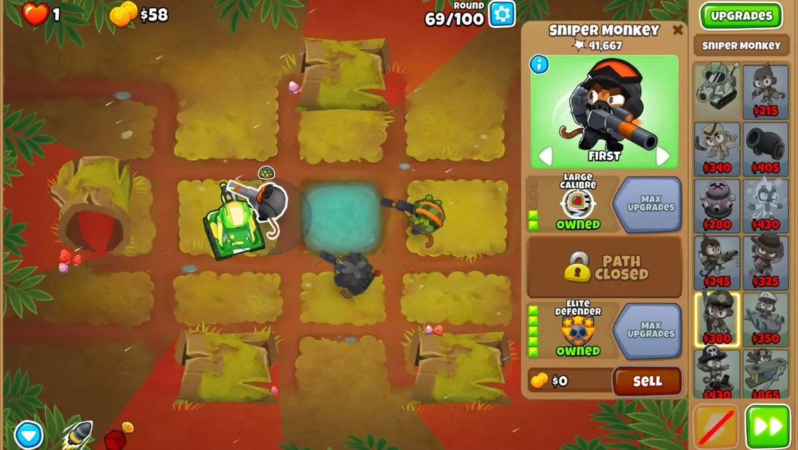 步骤2:将所有狙击猴升级为0-0-2。