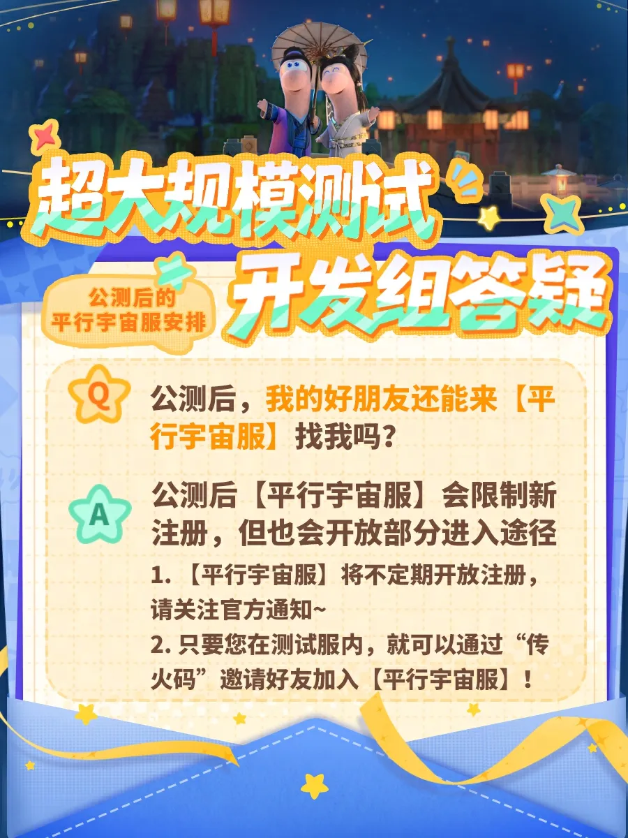 超大规模测试开启后,星星探险家们的到来让一颗颗星球变得繁荣,也让宇宙充满生机,真诚地感谢各位玩家的喜爱与支持!