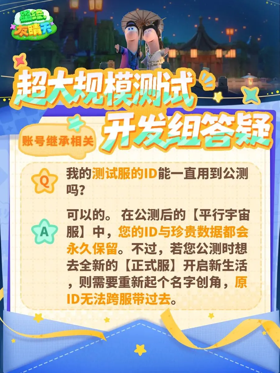 注:本次停服维护后,您此前在超大规模测试的数据与ID均将保留。同时签到活动、首充活动、累充活动、充值返利等时间也将对应延长。