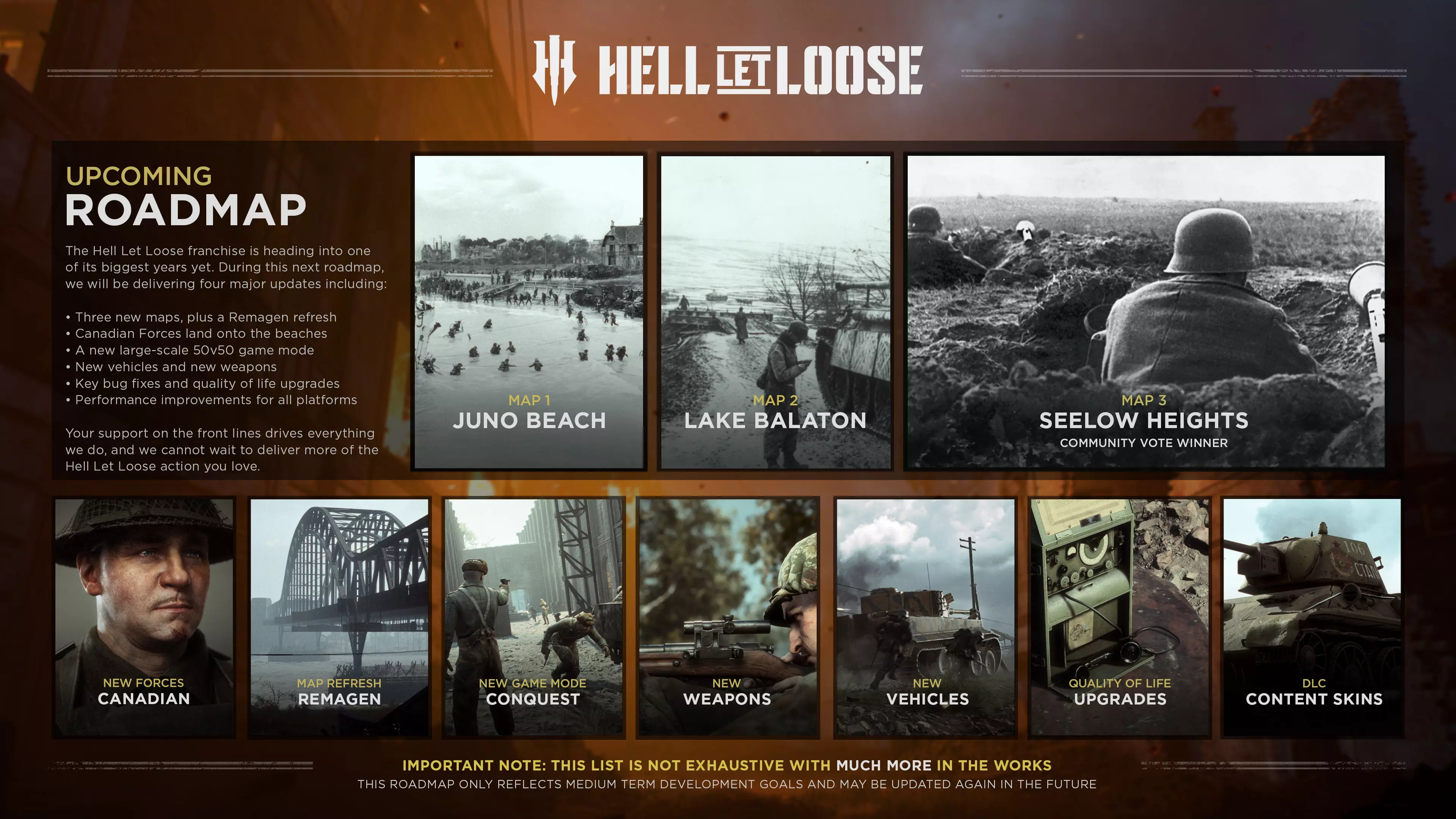 《地狱潜者》2026年新地图更新内容 1. 朱诺海滩 2026年推出的新地图之一是朱诺海滩,背景设定在D日+1。这一设定使开发团队能够探索登陆后的战场余波,而非登陆行动本身,从而在战场上开辟了新的叙事机会和场景。 玩家将体验到海岸与内陆战斗的结合,感兴趣的地点包括码头、鱼市场和隐藏的雷达掩体。虽然朱诺海滩与奥马哈海滩等现有地图有一些相似之处,但它进一步延伸至内陆,创造了多样化的交战和全新的游戏场景。 最令人兴奋的是,朱诺海滩将加拿大军队引入《地狱潜者》。### 介绍加拿大部队 2026年路线图的一大核心内容是玩家期待已久的加拿大部队的加入。加拿大在二战中发挥了重要作用,开发团队致力于精心且真实地展现其贡献。 加拿大部队将配备完全真实的制服、武器、装备和载具,所有设计均符合《人间地狱》一贯的历史标准。他们的加入将与朱诺海滩直接关联。 重返东线战场 路线图还将带领玩家重返东线战场,推出一张以“春醒行动”为背景的新地图,该行动是二战中德军的最后一次大规模攻势。此次行动将把玩家带到巴拉顿湖地区,这里有着苏军重兵把守的阵地、复杂的地形以及德军需要克服的恶劣天气条件。 这张地图旨在体现战争后期战斗的压力与激烈程度,着重强调坚固的防御工事和艰难的推进过程。 雷马根地图更新 除了新地点外,开发团队也在重新审视一张早就值得额外关注的现有战场。 雷马根地图正在进行更新,重点是改善游戏流程,同时保留该地图的独特之处。具体改动包括拓宽桥梁、重新设计桥下通道以提升通行性,以及增加额外的莱茵河渡口,以减少瓶颈并创造更多侧翼包抄的机会。部分河流区域也已扩大,为指挥官部署空降场提供了更大的灵活性。这些变化得到了更新的光照效果、错误修复以及雷马根地区新增的遭遇战模式的支持。 新增了环境音效以配合新的资源和布局。音效重点围绕桥梁区域,包括下方的新走道和塔楼内部。 森林和悬崖也添加了新的环境音效,以增强各区域间的区分度和高度感,主桥下方两侧的木制走道也不例外。 社区地图投票结果:梅斯或泽洛高地 在12月公布路线图后,我们开启了社区投票,从两个潜在的未来地图中进行选择: 1944年的梅斯 1945年的泽洛高地