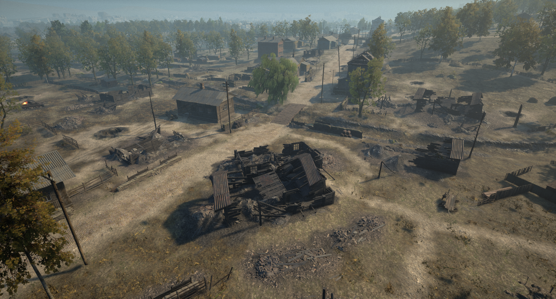 斯摩棱斯克郊区 地图西南部是斯摩棱斯克郊区的遗迹。该区域展现出俄罗斯乡村风貌,有自然景观和传统的俄式木屋建筑。这个争夺点周围的地形提供了绝佳的进攻机会,无论是从南部的山丘还是北部的河流方向接近。