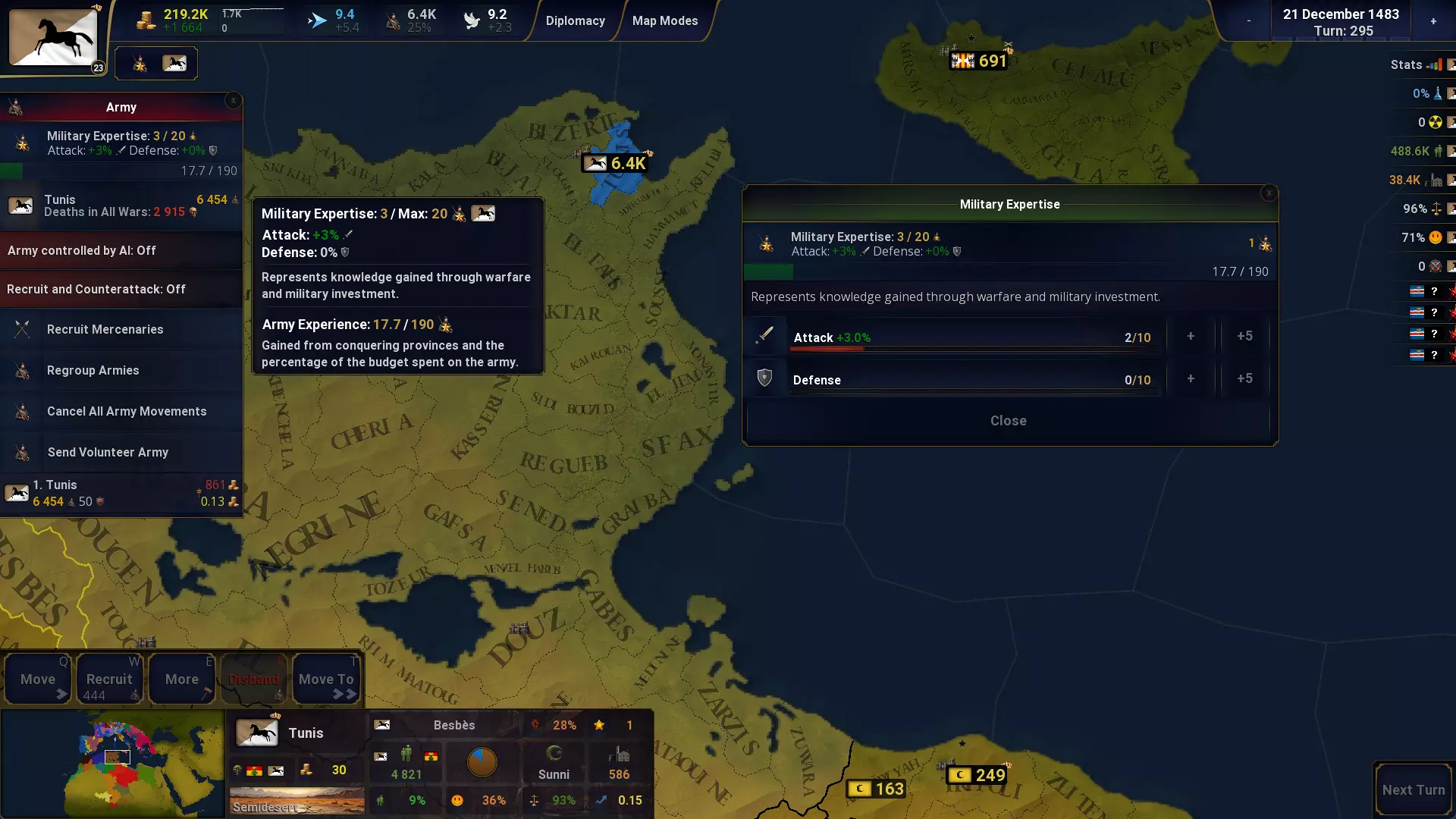 军事专长 代表通过战争和军事投资获得的知识。 通过征服省份和军队预算占比获得。