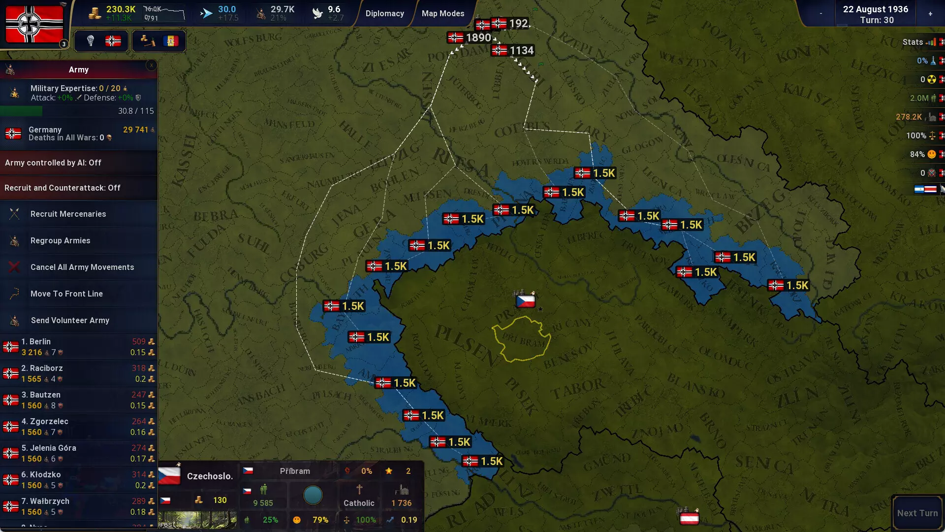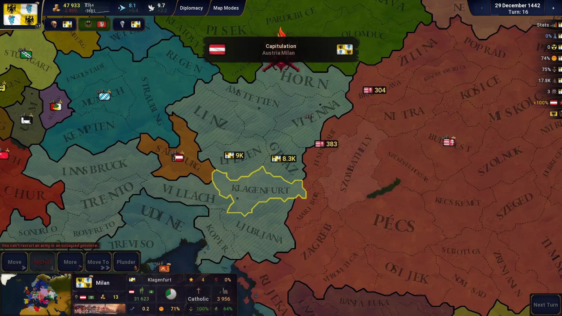 多省份招募 现在你可以一次性在多个选定省份招募单位,无需再逐个省份进行管理。系统会根据每个省份的可用招募上限自动分配单位。 在占领省份招募军队 可在占领省份招募军队,招募数量上限为该省份中文明人口的50%。 人口迁移 可将人口从一个省份迁移到另一个省份。你可以选择从该省份迁移哪个民族的人口。
