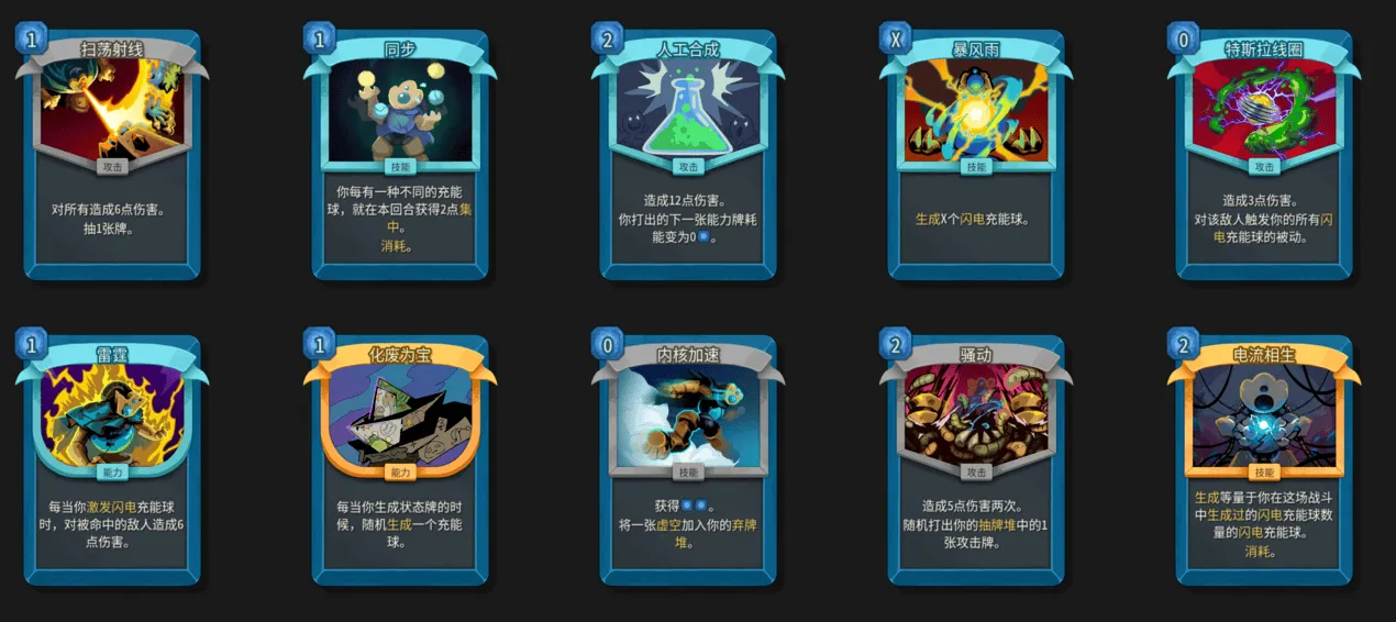 在每场战斗开始时,生成1个闪电充能球。