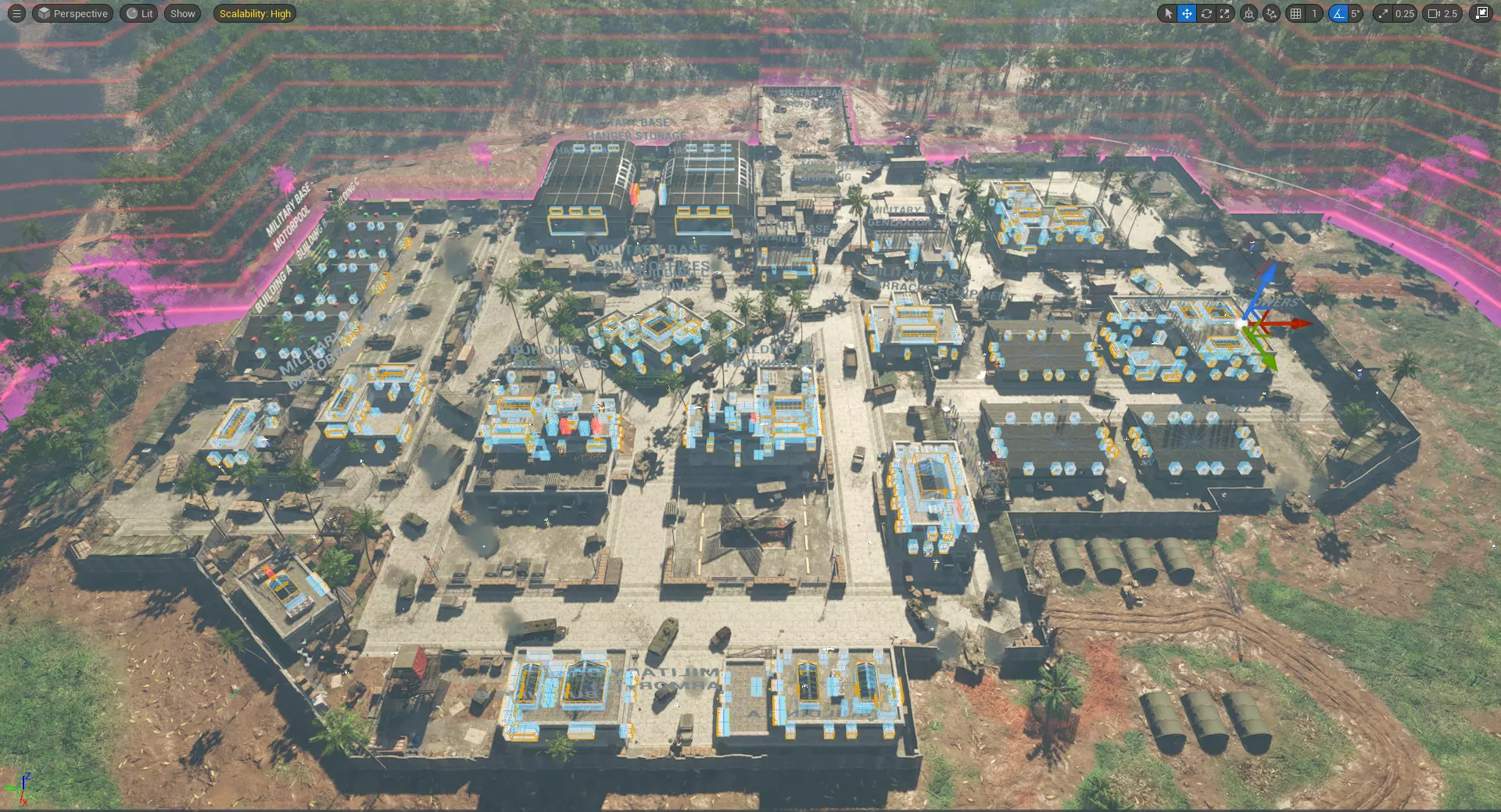 我们还优化了现有的音频提示,并添加了额外的音频提示,以增强整体的声音沉浸感。枪声是本次音效改进的重点。远处的枪声冲击力更强。我们引入了新的环境音效,尤其是在采石场,让环境感觉更加生动。我们还改进了玩家的动作音效,例如脚步声和跳跃声。 最后但同样重要的是,我们还开发了新的呼吸/受伤系统,当玩家耗尽耐力或生命值降至特定阈值以下时,该系统会被触发。 采石场重做 尽管我们在上个补丁中对采石场及其周边环境进行了改进,但无论是就该地图本身而言,还是对于我们未来环境设计的期望来说,这个世界都还远未达到我们的最终愿景。我们致力于打造真实可信的游戏场景,同时保持兼具趣味性与挑战性的战术玩法。 从关卡设计角度来看,我们需要一个能让AI有效封锁的环境,迫使玩家思考如何接近下一个交战点,并创造性地规划视线和射击角度。当然,战斗开始后,AI需要一个能让它们施展自定义技能的环境,比如利用掩护、侧翼包抄,以及在本补丁中新增的:呼叫增援来防守特定高价值区域。 此前版本地图存在的一个问题是其密集度和节奏。因此,我们向西扩展,将军事基地与工厂POI(兴趣点)进一步拉开距离。然而,这片区域并非只是一片死寂之地,我们散布了更多村庄及相关巡逻队,确保你在整个跋涉过程中都保持警惕。 军事基地本身已根据社区反馈进行了彻底翻新,以追求真实感和可信度。我们已采取措施,邀请越南现役人员协助以确保这一点。