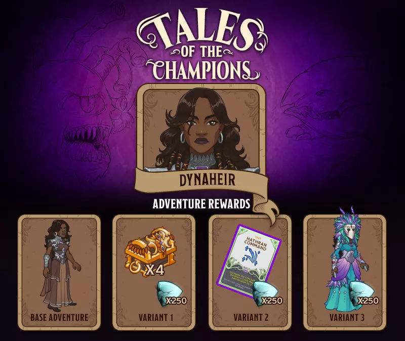 幸会! 《冠军传说》第三次更新现已上线,本次我们将前往血之城市和欢乐领域,开启两场经典主题冒险及六种变体! 接下来的冒险中,戴娜黑尔将在博德之门调查邪教徒活动,而铁心则会与一位老朋友一同踏入精野。 完成基础冒险将解锁戴娜黑尔(3号席位)和铁心(11号席位),完成额外变体则可获得专属专长和独特外观。 准备好迎接挑战了吗?继续阅读了解更多内容! 回归日
