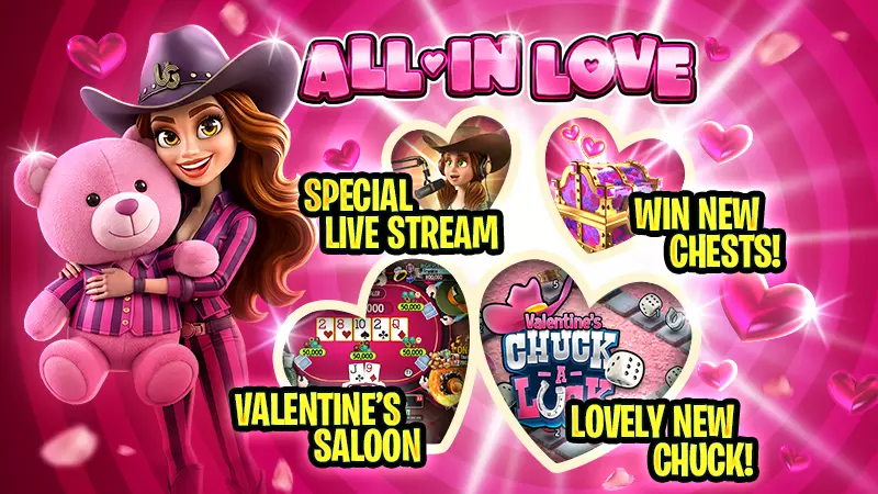 爱意全押 ♠️ 《总督扑克3》的情人节周已到来,我们将全心投入这场爱的盛宴。 ❤️ 畅玩情人节沙龙 加入特别的全押或弃牌模式,让你的心随牌局起伏。 赢取情人节宝箱 获取额外奖励,你可能解锁独特的情人节徽章或专属情人节帽子。 体验情人节掷骰子赌桌 经典玩法的节日改编版,充满甜蜜奖励。 周五情人节直播 加入我们的直播,一起玩扑克、赢奖品,共享浓浓爱意。 让我们为爱全押 ——《总督扑克3》团队