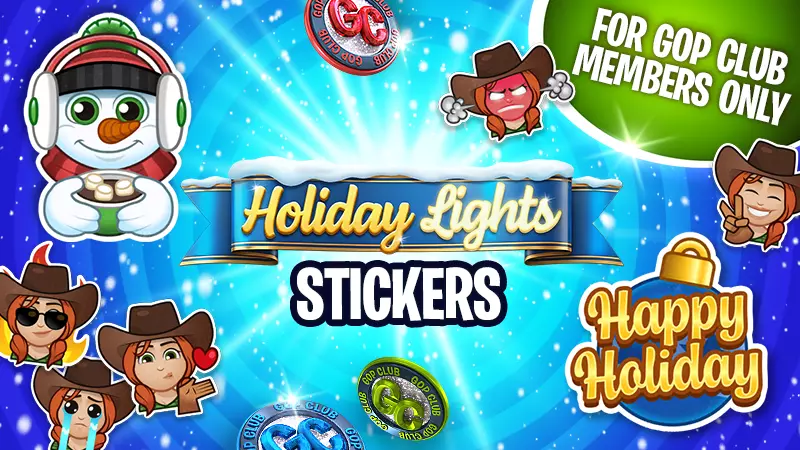 GOP俱乐部会员专享!来看看这些独家的节日灯光贴纸吧!☃️ 你在牌桌上使用过它们吗? ——你的《德州扑克总督3》团队