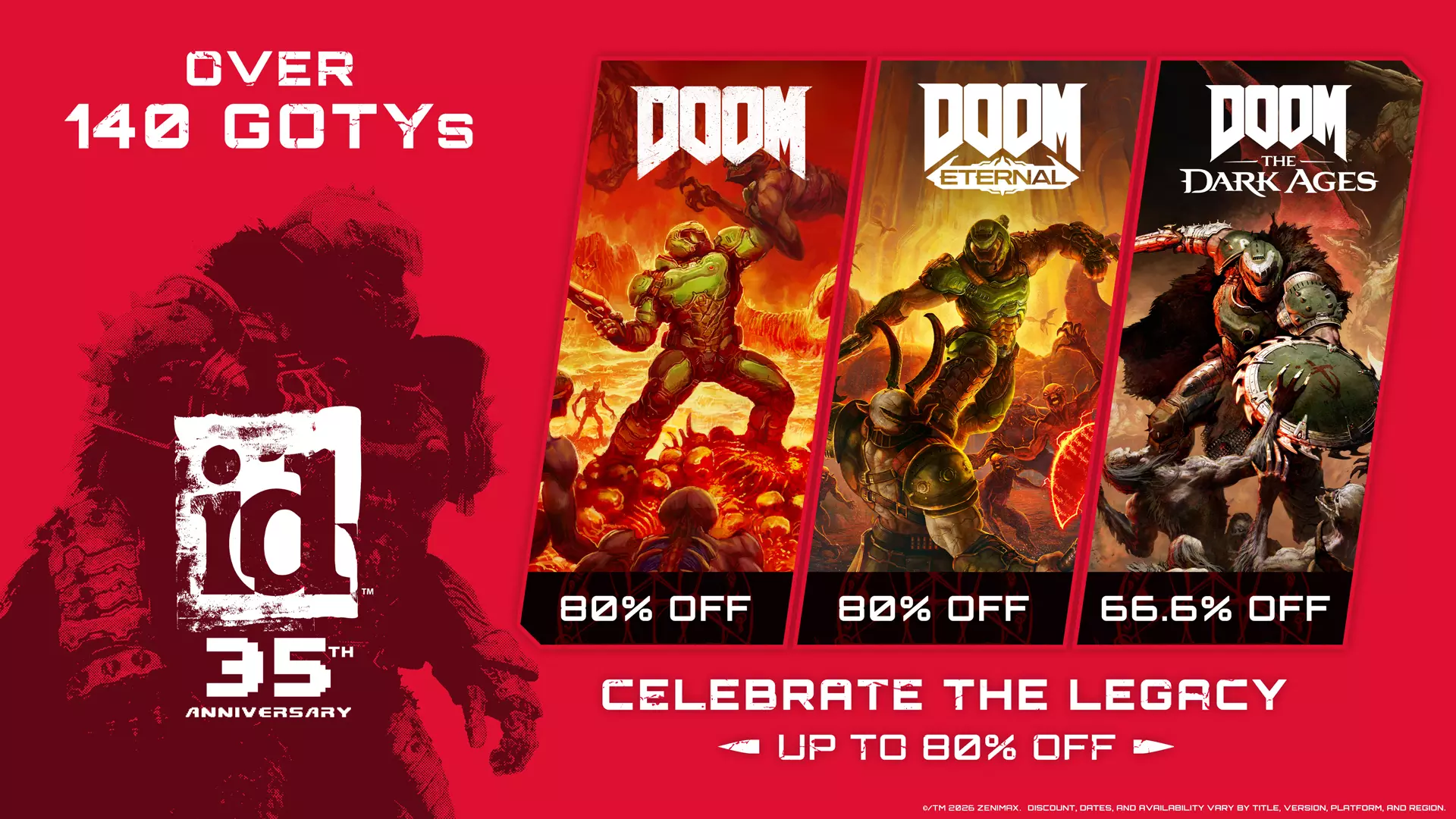 id Software旗下全部游戏限时特惠,折扣高达80%,其中《毁灭战士:黑暗时代》更是迎来史低66.6%的折扣。