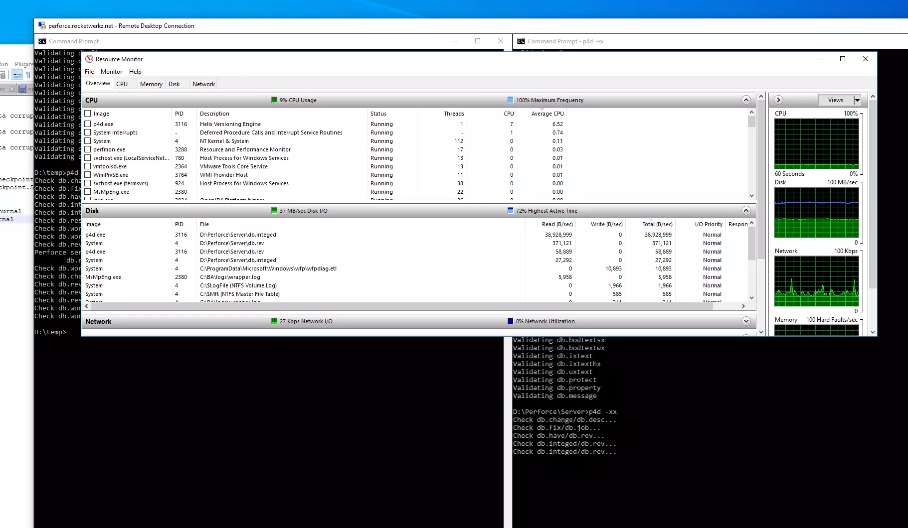 修复损坏的Perforce实例需要几个步骤。首次尝试读取数据库集后,所有损坏的文件都会被识别出来。接着会进行第二次处理,从上次成功的检查点中识别并生成新的替换数据库。这些新的替换数据库会被替换到相应目录中,然后对所有数据库运行另一种不同的完整性检查。此步骤非常缓慢,可能需要几个小时。如果一切顺利,将不会再发现损坏的数据库文件。但如果在此检查中发现新的损坏,就必须重新执行整个过程,直到所有损坏都被修复。