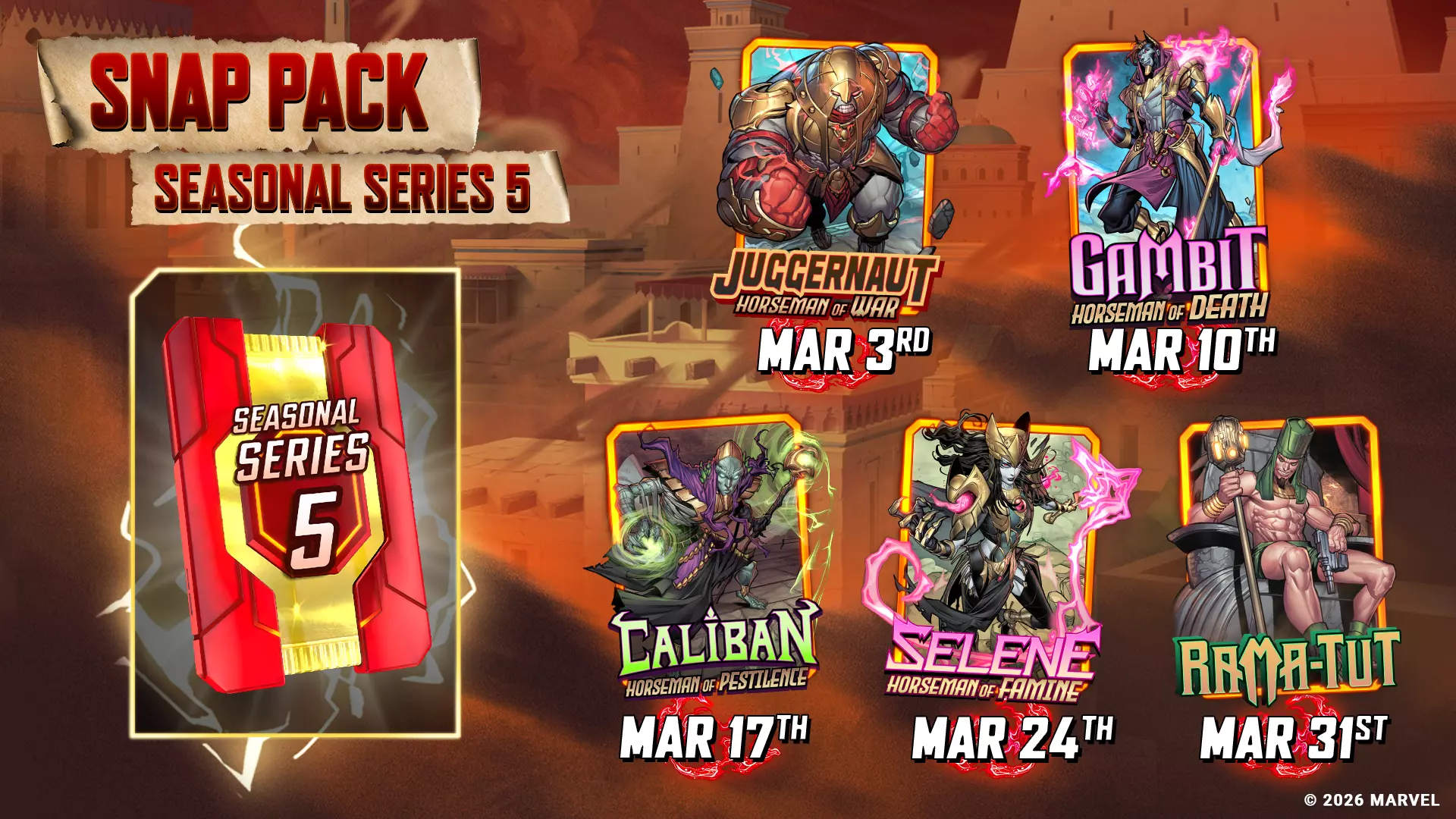 《漫威 Snap》全新卡包上线 3月15日:【重大胜利】- 第四赛季系列 3月26日:【星际鹰】- 第四赛季系列