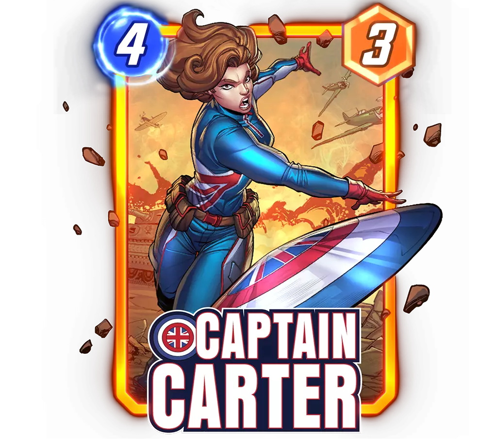 季票 在另一条时间线中,接受超级士兵血清的并非史蒂夫·罗杰斯——而是佩吉·卡特。她勇于接受挑战,成为了卡特队长,挥舞着印有米字旗的盾牌,拥有无可匹敌的力量与战略头脑。作为多元宇宙抵抗力量的真正领袖,她在任何现实中都坚定地代表着正义。 新角色:卡特队长