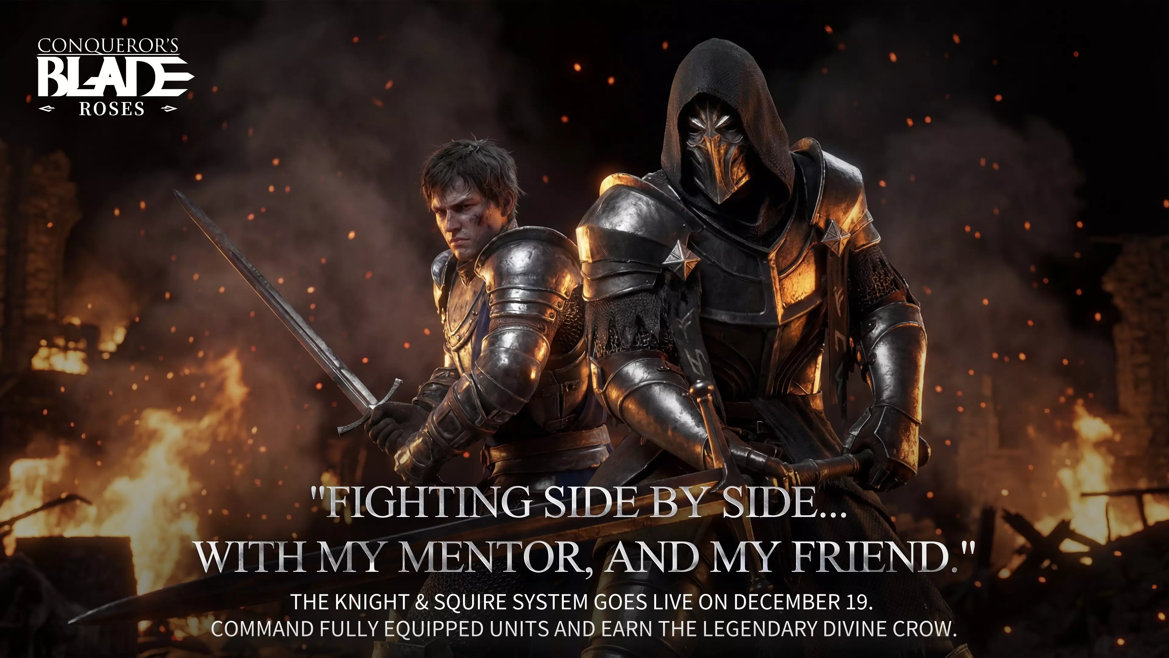 领主与骑士们, 在即将到来的战争风暴中,仅凭勇气不足以生存。你需要能够斩断骨骼的钢铁,以及能够夺取胜利的军团。 战争议会听到了你们的担忧。无论你是刚受封踏入北方的骑士,还是久别归来的老兵,此刻你手无寸铁。 因此,为了赢得这场战争,我们决定打破规则。 这是我们能提供的最高级别【战斗准备支援】。这是你应得的战争资本。 —— 一、致新骑士:打破规则的【入门特权】 如果你从未举起过战旗,不必担心起步较晚。我们已准备好一项【颠覆游戏】计划,以弥补时间差距。 1.【全面动员】从第一天起指挥军队 - 战斗部署:战争委员会已签署命令,将13支王牌部队直接部署到你的兵营。其中包括全套战术组合:重步兵推进、骑兵冲锋以及远程压制。 - 委员会承诺:在你达到200级前,这13支部队任由你指挥。达到200级后,你可以永久招募3支最信赖的王牌部队(包括传奇的斯巴达勇士、虹吸者和翼骑兵)作为你的私人卫队。 2.【战术重组】无限“撤销”按钮(200级前) - 战斗部署:200级前,部队经验值、精通度、已封存荣誉、技能点的所有重置以及 doctrine 移除均无限次且免费。 - 委员会承诺:大胆行动。无论是测试冷门单位还是奇袭战术,若战况不利,你可随时“撤回指令”并重新部署。战争议会将承担所有战术成本。 3.【饱和支援】武装到牙齿 - 战斗分配:完成全新的英雄征程训练,战争议会将调拨一批战略物资: - 1500枚单位勋章 - 100本论文 - 100000点荣誉和22000点技能点 - 以及大量其他资源。 —— 二、致回归老兵:唤醒沉睡的军团 你曾离开这片战场,但你的名字仍在名册之上。若你此前尚未开始英雄征程训练,现在正是重掌指挥权的时刻。 1.【身份重新验证】被遗忘的军备库 - 议会裁决:只要你尚未接受旧版英雄之旅任务,战争议会就会将你归类为【新骑士】。 - 参与特权:你保留账户的历史数据,同时有资格领取全部1500单位勋章、100份论文以及上述提及的其他大量资源。 2.【荣耀奖励】守望者专属补给 - 战斗分配:如果你已开始英雄之旅,登录即可领取专属玫瑰感谢礼。 - 议会承诺:我们珍视每一位守护者的付出。在玫瑰日的第一天,我们确保你在行军中保持领先。致新骑士与资深领主:骑士与侍从系统及战术传承 钢铁可以授予,但经验无法速成。为助各位突破寒冬的封锁,战争议会正式推出【骑士与侍从】系统。这并非单纯的训练,而是一份荣耀的传承契约。 若你是侍从(新骑士):切勿独自踏入寒冬 - 【寻找导师】:北方的风雪寒冷刺骨,切勿独自冲锋。找到一位值得信赖的骑士,缔结生死与共的羁绊。 - 【继承王牌】:接管骑士经多年战争磨砺的强大部队。承载他们的荣耀与信任,去赢得属于你自己的胜利。 - 【毕业荣誉】:当你能够独当一面时,议会将授予你一个赛季5星单位选择箱。这是成长的奖励,也是你们羁绊的证明。 若你是骑士(高阶军阀):在此刻下你的名字 -【意志传承】:寻找能够执行你战术意志的继承者。将你完美的部队和果断的经验倾注于他们。见证这支新生力量在战场上复刻你的传奇。 -【北方的敬意】:你的经验价值连城。为表彰你的战术传授,议会特开启专属【教学贡献补给箱】。 -【解封传奇】:开启补给箱有机会解封金钱无法买到的战略物资——传奇神鸦和史诗英雄蓝图。