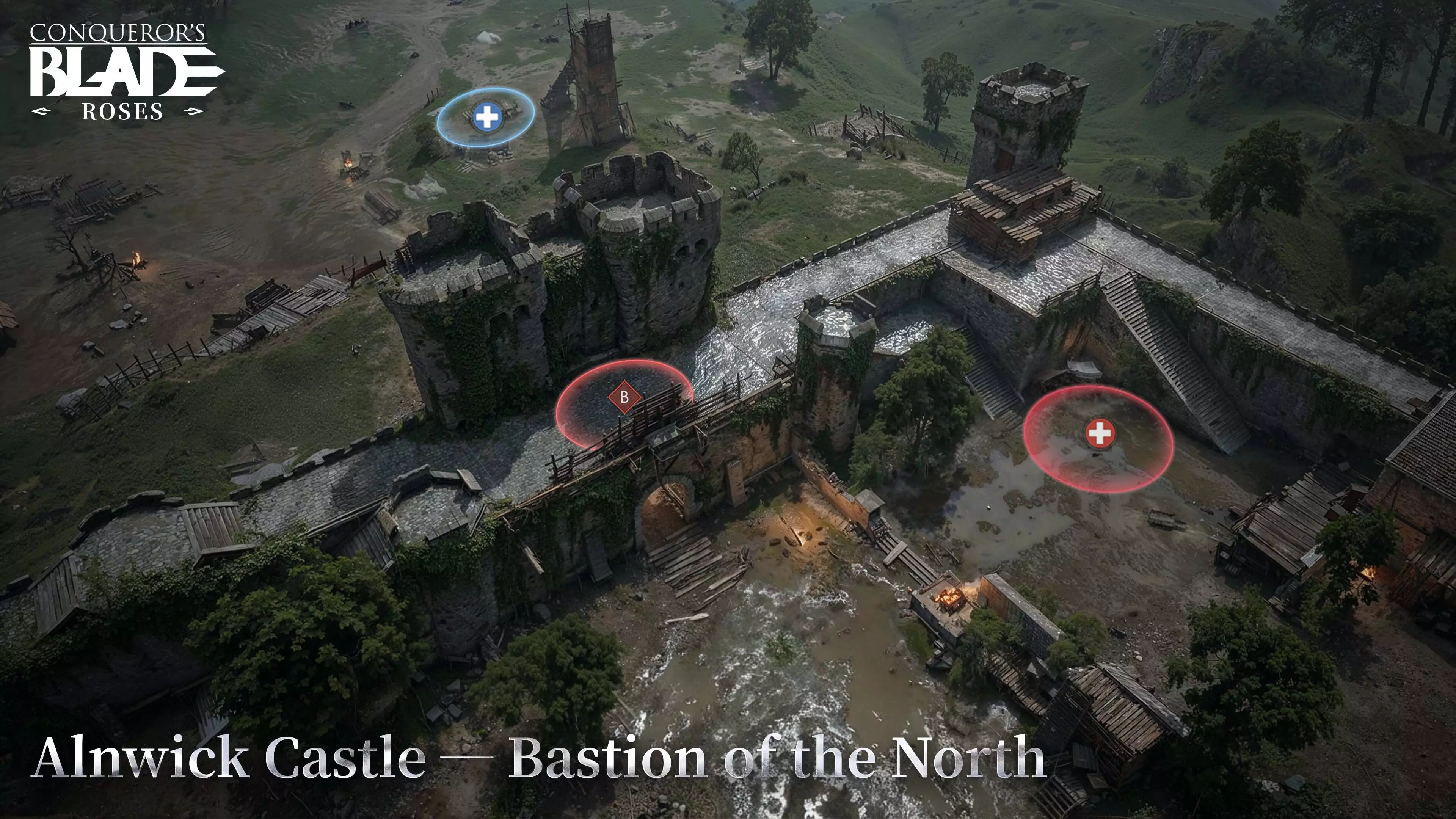致各位领主与骑士: 奉战争议会之令,阿尼克城堡的防御蓝图现已解封。 在这场红白玫瑰的交锋中,此地绝非普通前哨,而是王国的咽喉所在。 历史的静默:屹立于黑洪流之上 阿尼克城堡是这条漫长防线中沉默的巨人。 它矗立在阿尔恩河之上,灰色的城墙日夜经受风雪的侵蚀,悬崖下的深渊冷冷注视着每一位来访者。这里才是真正的【北方之冠】,每一块石头都浸染着鲜血。 - 对于红玫瑰(兰开斯特)而言:这是最后的堡垒。守住这里,便保有向南复仇的最后希望。 - 对于白玫瑰(约克)而言:这是必须拔除的荆棘。领主挥师北上,只为一个目的——粉碎老王最后的抵抗。谁掌控了阿尼克城堡,谁就能决定北方的命运。