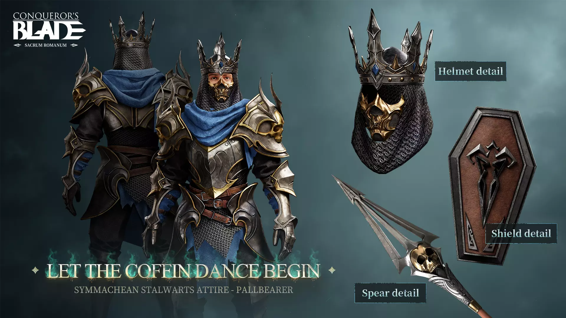 古老的黑暗领主被封印后,黑隆峡湾之下破碎的王冠与无数陨落者的执念逐渐凝结成【亡灵瘴气】。 当战斗后封印出现松动,魔王将自身力量注入破碎王冠,并将其与一名陨落的西玛奇安卫士指挥官的灵魂绑定。【持棺者】由此诞生。 【持棺者】将墓盖锻造成棺形盾牌,把第一枚棺钉淬炼为矛尖,于黑夜中徘徊——肩负着一项使命:为你送葬。 西玛奇安卫士专属外观 - 【持棺者】