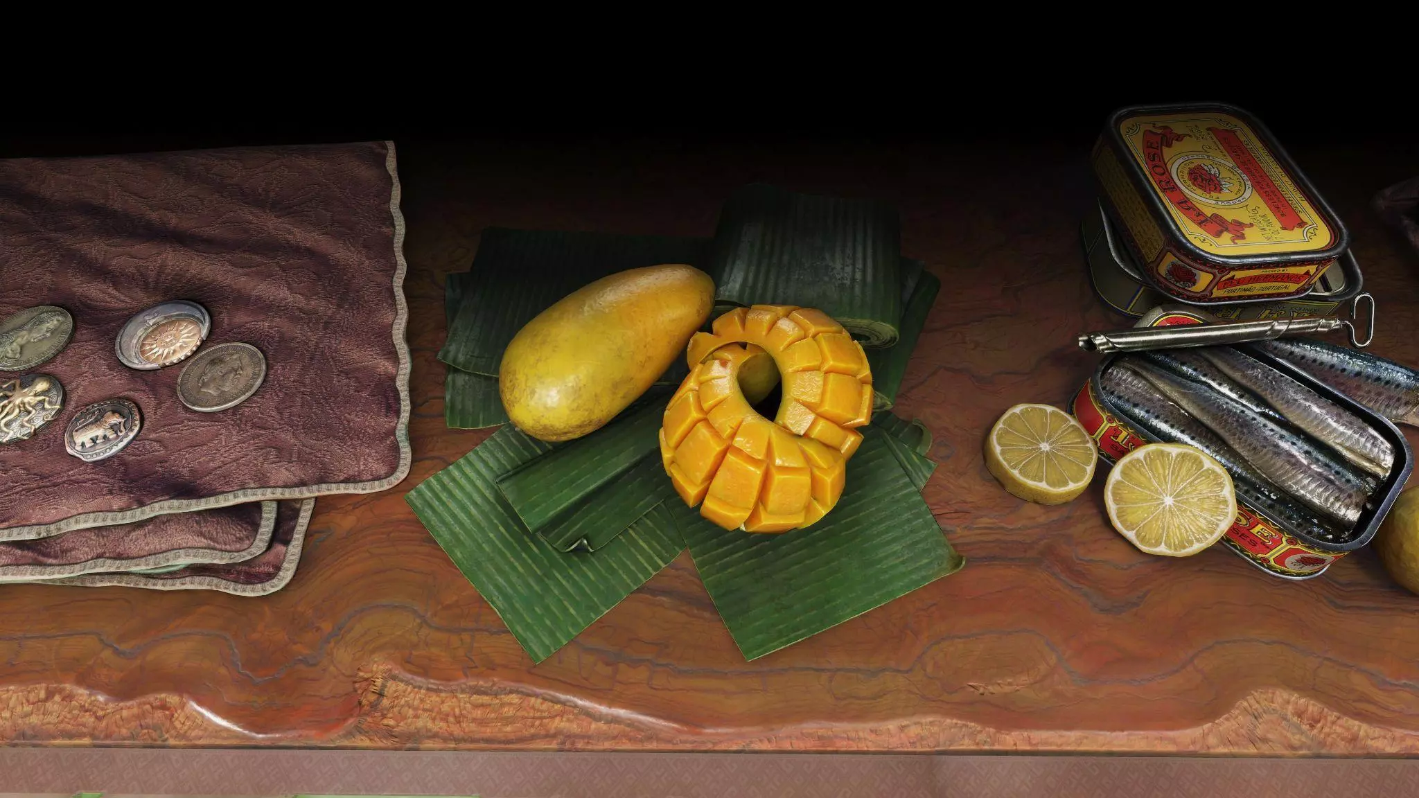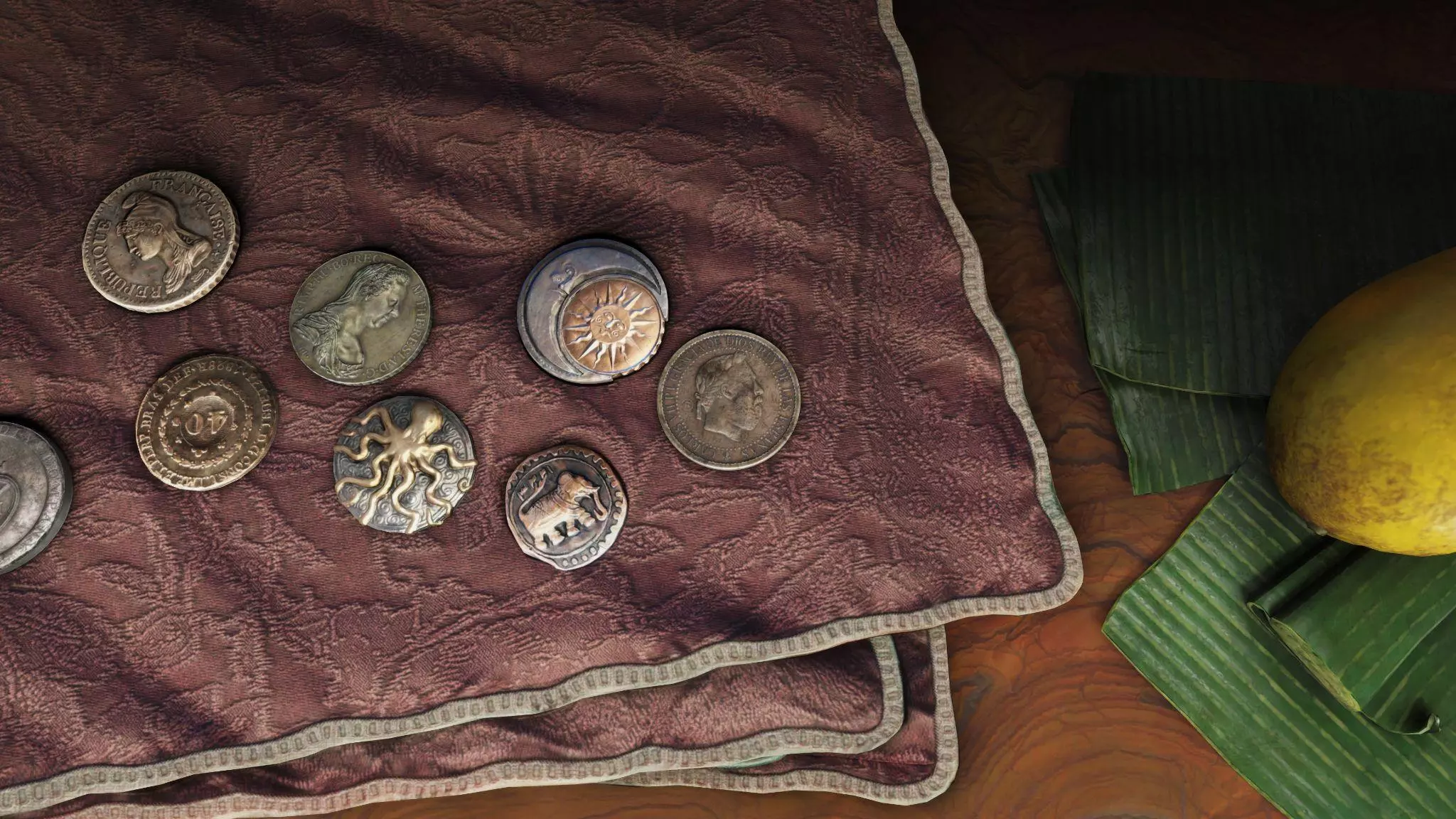 采用符合历史风格的砂岩饰面完成的论坛。但谁又能说他们不会把整个建筑都漆成美泉宫黄呢?这是你的帝王论坛,由你做主! 桌子资产 新增四个桌子物品,包括一块漂亮的橄榄木大理石纹桌面,以及一枚可添加到你收藏中的DLC硬币。 每件新物品的灵感都源自伊比利亚黄昏中的核心国家,而且由于我们在近期的更新中一直围绕美食主题,所以我们可以自豪地说,如果你同时拥有民族觉醒,现在应该可以只在桌子上摆放食物了。