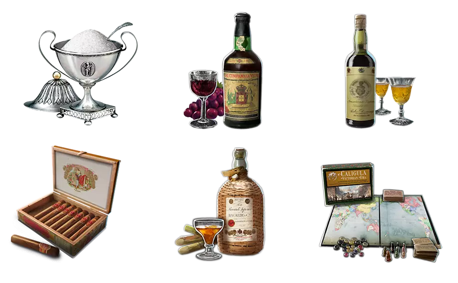 完整的纸质地图(上方为西班牙语,下方为葡萄牙语) 事件插画 在《伊比利亚黄昏》及其内容中,我们需要在事件插画中传达多个主题。一个衰落的帝国是核心主题,这一点不足为奇,它涵盖了其他主题,如保守派与现代化派之间的冲突,以及不同社会阶层之间的分裂。其他主题还包括殖民化、人力与资源剥削。
