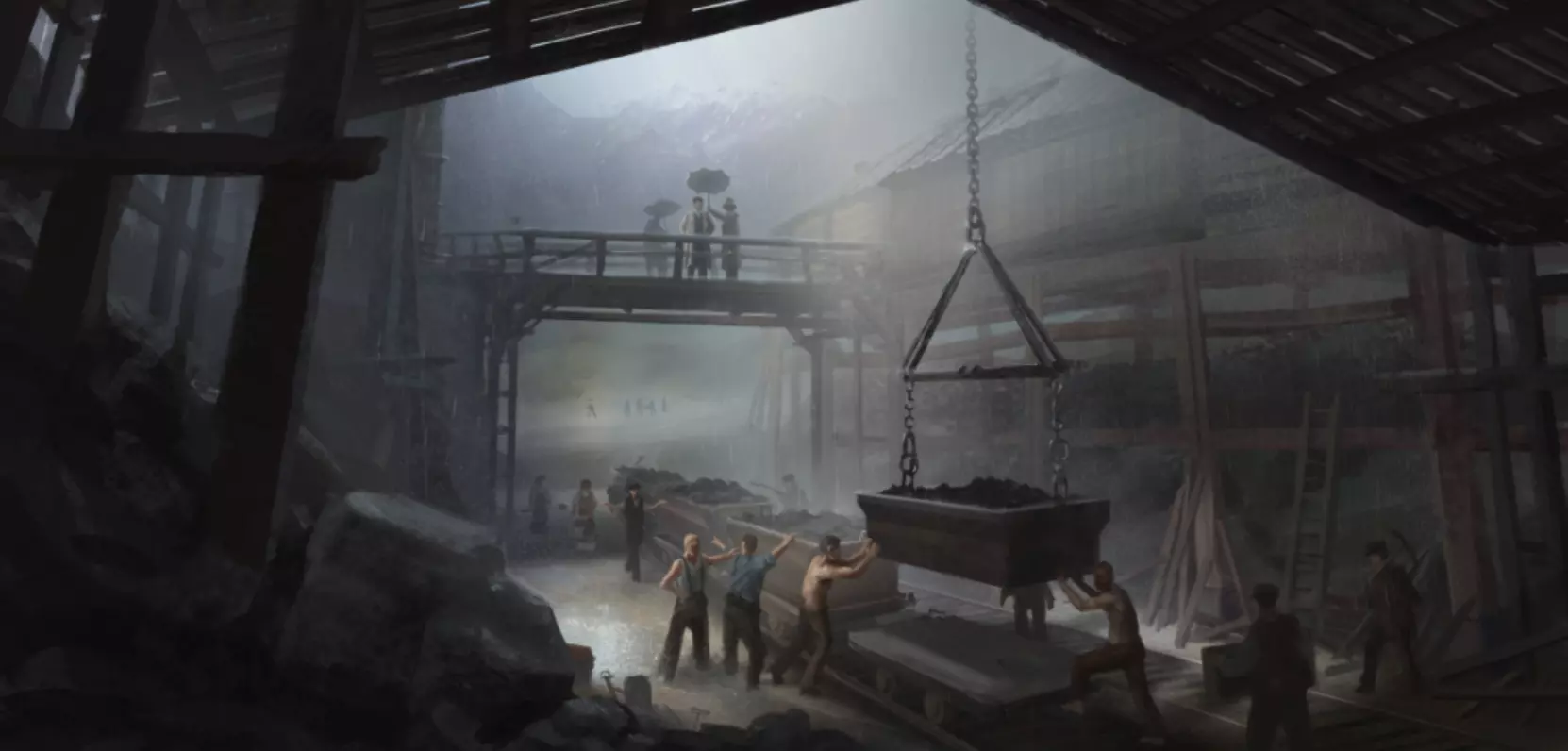 矿工们的生活可不像那个撑伞的人那样舒适。