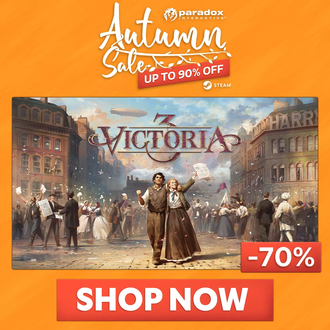 各位维多利亚时代的玩家们,大家好! Steam秋季特卖延续了上周的优惠活动,《维多利亚3》及部分精选内容将继续保持折扣,同时还新增了更多优惠商品。