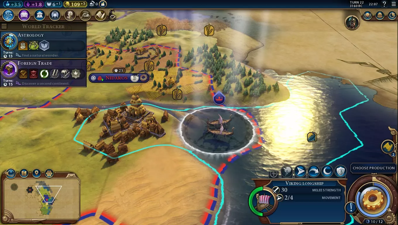 崎岖的海岸线无法减慢我的长矛兵的步伐。 从海上到陆地以及从陆地返回海上的缓慢单位移动过程,可以通过港口区域得到部分缓解,但挪威文明可以完全忽略这一切,轻松地在陆地和海洋地格之间移动陆地单位。这不仅能在护送军队前往新大陆以及单位受伤时快速撤离时节省时间,还有助于加快宗教单位的移动速度。更快的宗教单位意味着能更快将更多城市转化为你的信仰,如果你追求宗教胜利,这会非常有用。 在游戏后期,当 embarked 移动限制提升后,你可以利用这一特性让大量单位迅速从 embarked 状态转为向内陆移动。如果你正对另一个文明发动突袭战争,这会特别强大,因为你从一开始就能在陆地上构成严重威胁,而无需花费时间巩固自身阵地。 总结:早期越洋航行非常有利于探索。 在敌人进入文艺复兴时代前撤退到海洋格进行休整,这样他们就无法伤害你。 快速登陆可用于在战争的第一回合让你的陆地单位涌入敌方领土。 哈拉尔·哈德拉达的独特单位:维京长船