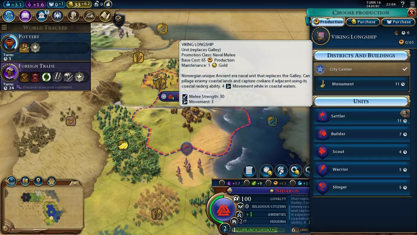 安然无恙,无人能寻。 如果哈拉尔·哈德拉达的领袖能力还不够,这里还有一堆海军加成! 借助造船术跨越海洋 尽管这只能让跨洋航行的科技提前一项,但考虑到在当前游戏时代之前研究科技的成本会更高,制图学刚出现时的研究费用极其高昂。它还有一个需要一段时间才能解锁的尤里卡要求(拥有两个港口区域)。因此,挪威在海洋探索方面仍将拥有显著的先发优势。造船术的尤里卡要求建造两艘维京长船,这其实很容易做到,这一点也很有帮助。 早期跨洋航行的明显好处是探索潜力。在游戏中,你可以轻松遇到所有文明和大部分城邦,开始与其他大陆的文明进行奢侈品交易(他们拥有与你不同的奢侈品),并能在其他文明之前很久就对遇到的部落村庄使用沿海劫掠功能。你甚至可能发现空旷的大陆,在上面建立几座城市,为你日后的海军行动打造一个良好的前沿基地。 尤其是遇到所有城邦会带来巨大优势。每个城邦每个时代会给予你一个任务。如果你提前两个时代发现它们,这可能意味着每个已发现的城邦最多能提供两名使者。即使你无法完成很多任务,尽早发现更多城邦也意味着你有更多选择,可以将使者派往能获得最佳使者和宗主国加成的地方。一个不太明显的好处是战时部队的撤退能力。将海军单位撤退到海洋中,且与最近的沿海地格至少间隔一格,就能使它们免受攻击,除非敌方文明已进入文艺复兴时代、拥有【莱夫·埃里克松】伟大海军统帅(其出现时间不早于中世纪),或是拥有带有【巧合测距】晋升的三列桨座战船(这种情况极为罕见,遇到时只需再撤退一格即可)。这种能力与挪威文明能力的下一部分配合效果极佳…… 中立海域 healing 所有挪威海军近战单位可在中立领土每回合恢复10点生命值。这并非特别快速的生命值恢复来源(需要记住的是,它对海军远程单位如三列桨战舰无效),但它仍然能显著提升你在海战中的续航能力,尤其是在游戏早期,当你没有太多农场或渔船可供掠夺时。利用你撤退到海洋格的能力,你可以安全地恢复生命值,并在单位生命值恢复后迅速重返战斗。 在战时之外,这也有助于探索。蛮族海军单位(以及他们的陆地远程单位)有时会很麻烦,但如果你能移动到足够远的地方摆脱他们,你就可以恢复生命值,然后直接回到海洋探索,而不必一路返回陆地。 快速登船和离船