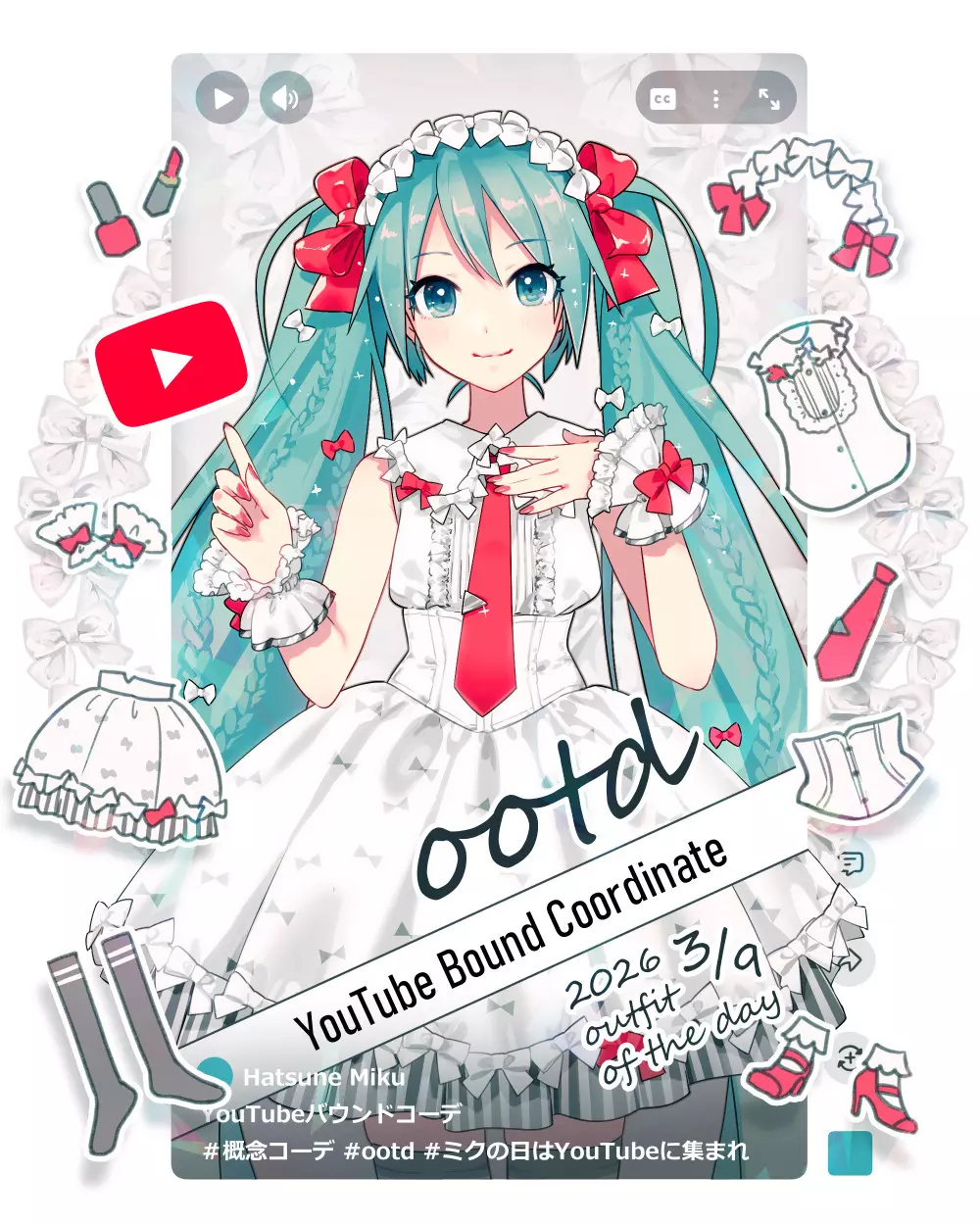初音之日 2026 《初音未来:缤纷舞台》官方发布 初音未来 ✖ YouTube 3.9联动立绘公布。 插画家【Eko iXima】绘制。