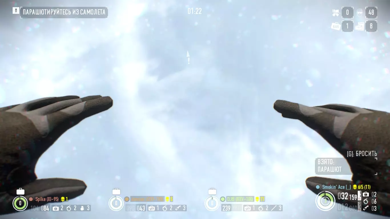 在【天堂诞生】合约中,需在任务开始后的1分23秒内全队跳出飞机。 如何完成: 一旦戴上 masks,必须以最快速度行动才能按时完成。因此,只有西装和速度能帮到你。 最好让一两个人留在原地,另外两个人跑去按投钱按钮,这样可以节省时间。不要把子弹浪费在“笨蛋”身上:只需快速跑过去,只射击那些坐在门边、阻碍快速开门的敌人。 跑过去,按下钞票投放按钮,穿上降落伞然后……