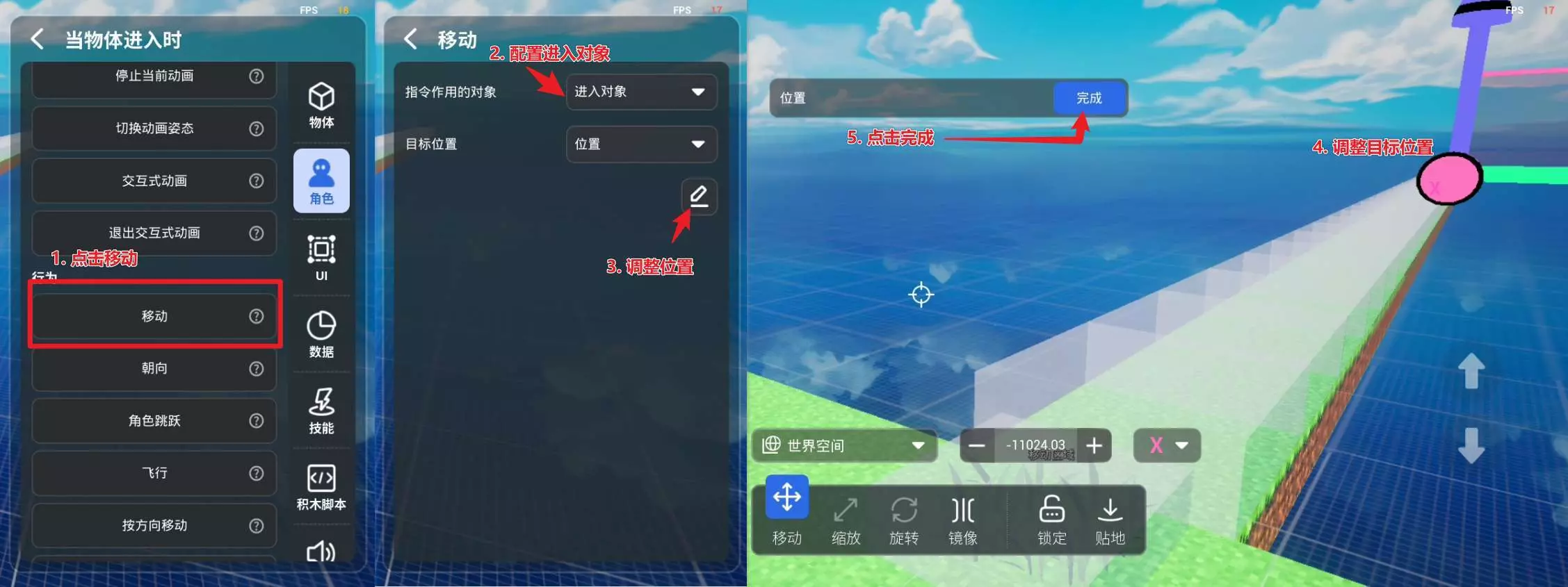 让角色移动到对应位置:
