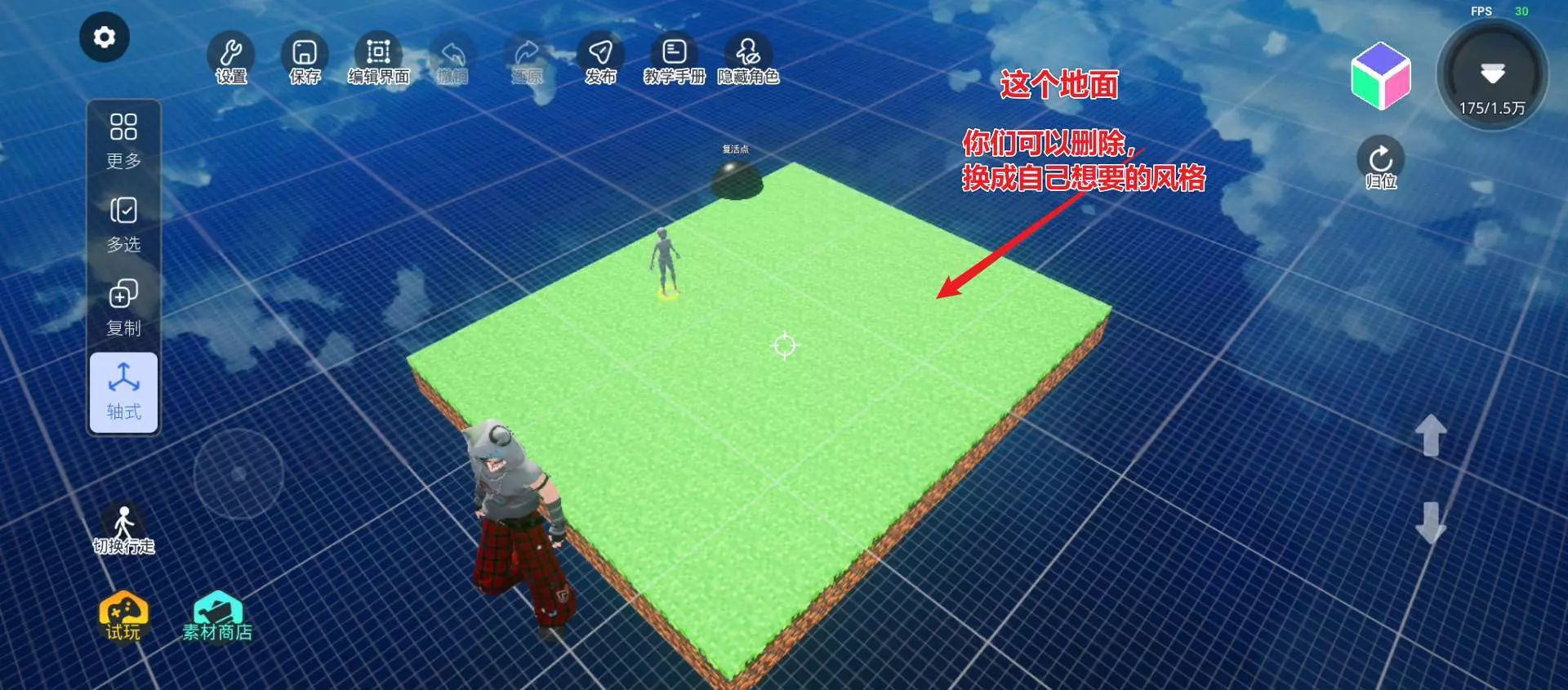 徒弟们,拿到存档之后,可以根据自己想要的风格,更换地面: