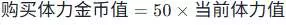 所以我一次性要买五个体力值的公式就是: