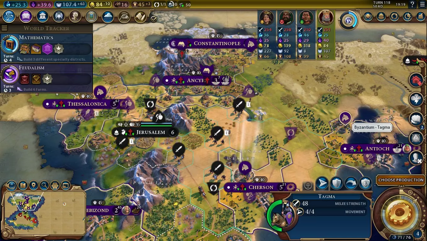 无论是在战争还是神学战斗中,这种力量加成都非常出色,同时也有助于清剿蛮族!拜占庭将军事与宗教优势紧密结合,打造出一个既能通过战争传播宗教,又能借助宗教传播来辅助战争的文明。圣地产出2点大预言家点数。