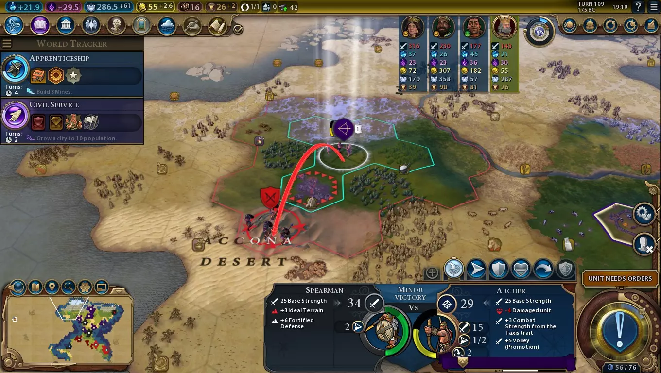 对抗陆地和海军单位 正面改动:射程从1提升至2 对抗陆地和海军单位时+10远程战斗力 特色区域:赛马场