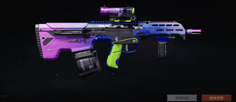 粉色自枪管蔓延,蓝色从枪托涌出,在枪身中段交汇碰撞。全枪覆以炫彩镭射涂装,质感前卫,视觉犀利,既酷炫又不失锋芒。