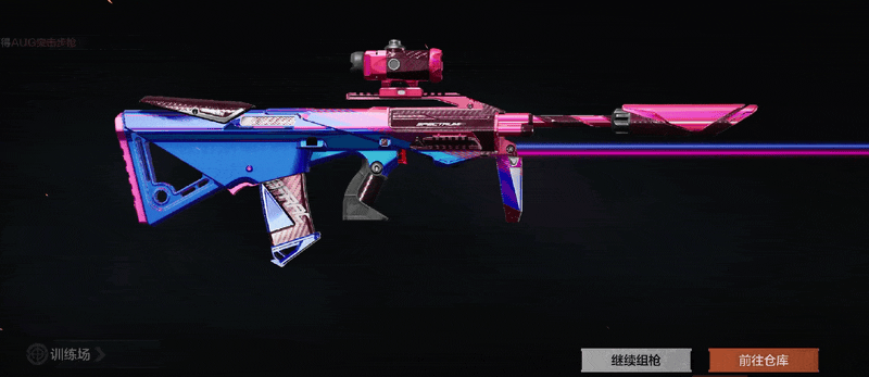检视时,手持【奇异镭射·AUG】细细欣赏,蓝色与粉色搭配,色彩对比极强,让人一眼惊艳!