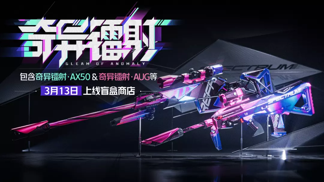 全新系列军需「奇异镭射」3月13日即将上架盲盒商店!金色品质枪械涂装【奇异镭射·AX50】【奇异镭射·AUG】来袭!