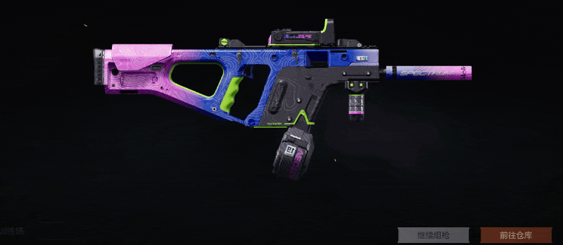 同样采用镭射撞色设计,蓝粉两色贯穿枪身,色彩对撞格外醒目。枪托处“SPECTRUM”点明主题,在阳光下镭射涂层闪耀夺目!