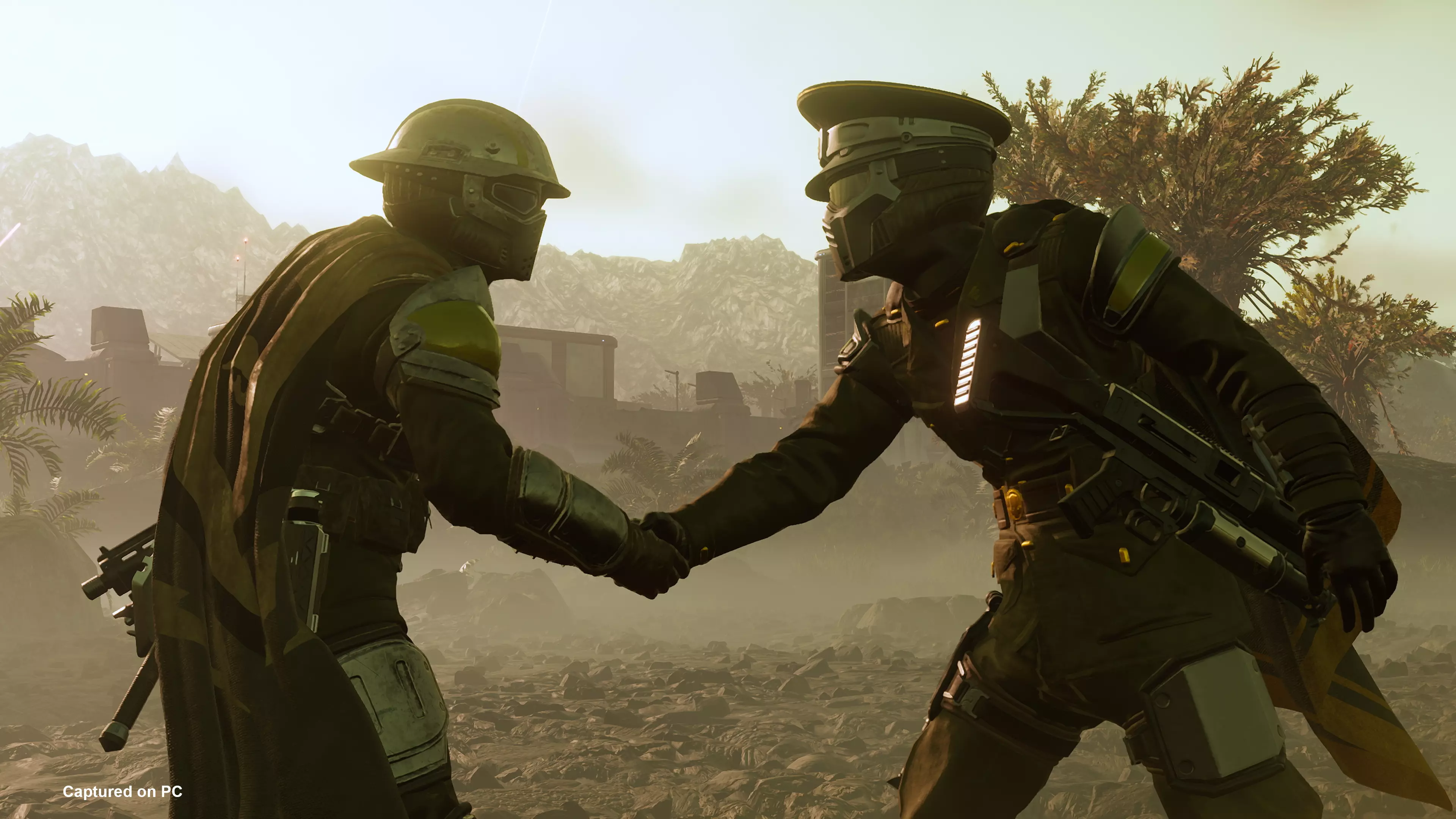 既然我们扮演的是传统士兵,那何不用传统方式——【外交式握手】来互相问候呢!你或许会用毒气和火焰消灭敌人,但小队之间的互动还是要保持格调。