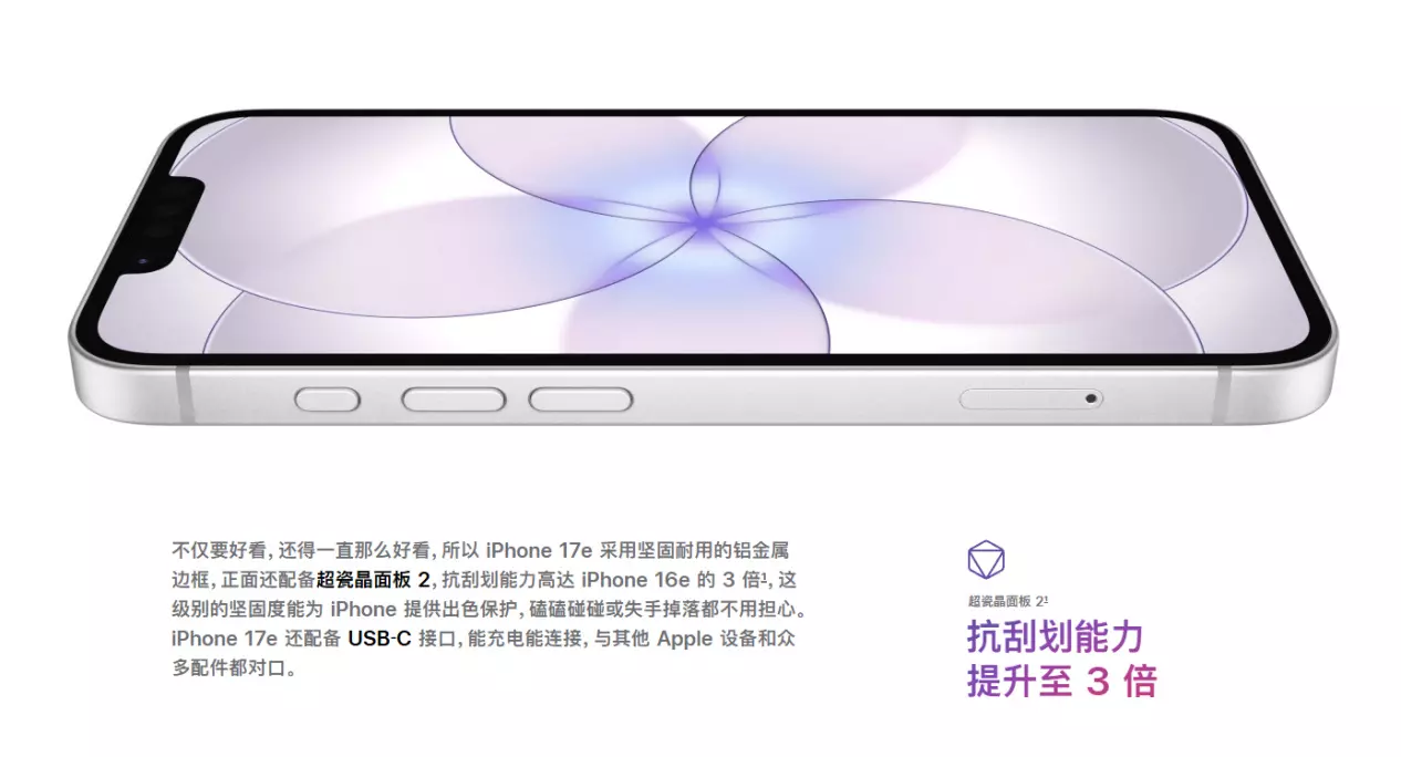 一同缺席的,还有ProMotion自适应刷新率技术。 是的,虽然这一代连标准版iPhone 17都加入了对ProMotion的支持,但至少现阶段,苹果并不打算在e系列上加入对高刷的支持。