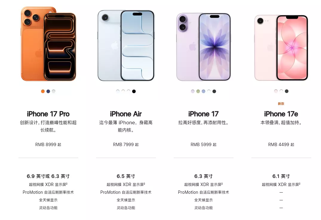 显然,这是一款针对已经长时间没有换机,老机型即将寿终正寝,但又习惯了iOS,想要换一款便宜新机的产品。 当然,就像我们去年在iPhone 16e文章中所提的一样,但如果不将目光局限在iPhone,而是放在整个智能手机市场,4499元起的iPhone 17e并不是一款具有竞争力的产品。