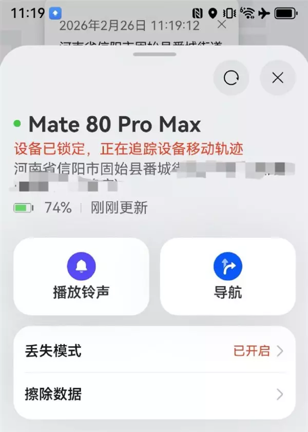 快科技3月2日消息,一位博主今日发帖称,“自己的华为Mate80 Pro Max丢失11天,自己靠着定位一路追踪,跨省把手机拿回来了”。