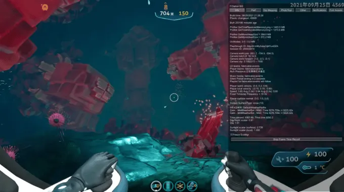 海蛟停在600米处,海虾能到700米去,去捡3~5个蓝晶石(多出2个可以做海虾热能发电模块,没啥用)