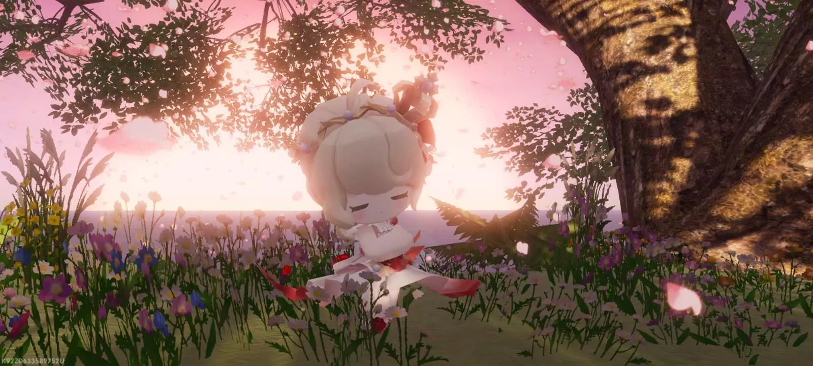 这是迷你世界社区的春日主题分享帖,展示了游戏里的可爱角色在花海树间、粉紫色调的春日海边场景,氛围浪漫治愈,尽显迷你世界的春日美好。