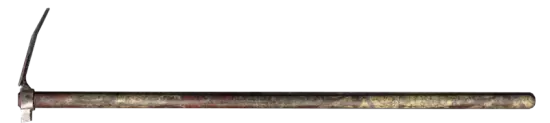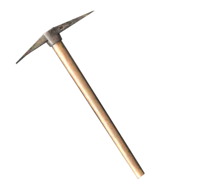 我的心头好。这家伙很结实,是Wycc拍摄的。和柱子差别不大,稍微坚固一点。伤害范围比柱子大。可以用来:1.快速砸开插销锁着的门(开得最快,7下);2.肢解动物;3.把原木加工成木柴;4.开罐头;5.传送(F11)。战斗特性: 伤害 20 强化伤害 50 冲击 30 强化冲击 40 出血 是(100%) 鹤嘴锄 鹤嘴锄。