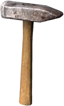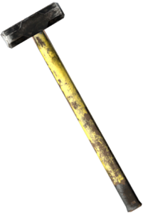 这只是一段水管,马里奥可不会从里面出来。 还不错的初始武器。 没有特殊属性。 战斗特性: 伤害 17 强化伤害 25 冲击力 20 强化冲击力 34 流血效果 无(0%) 锤子 锤子。