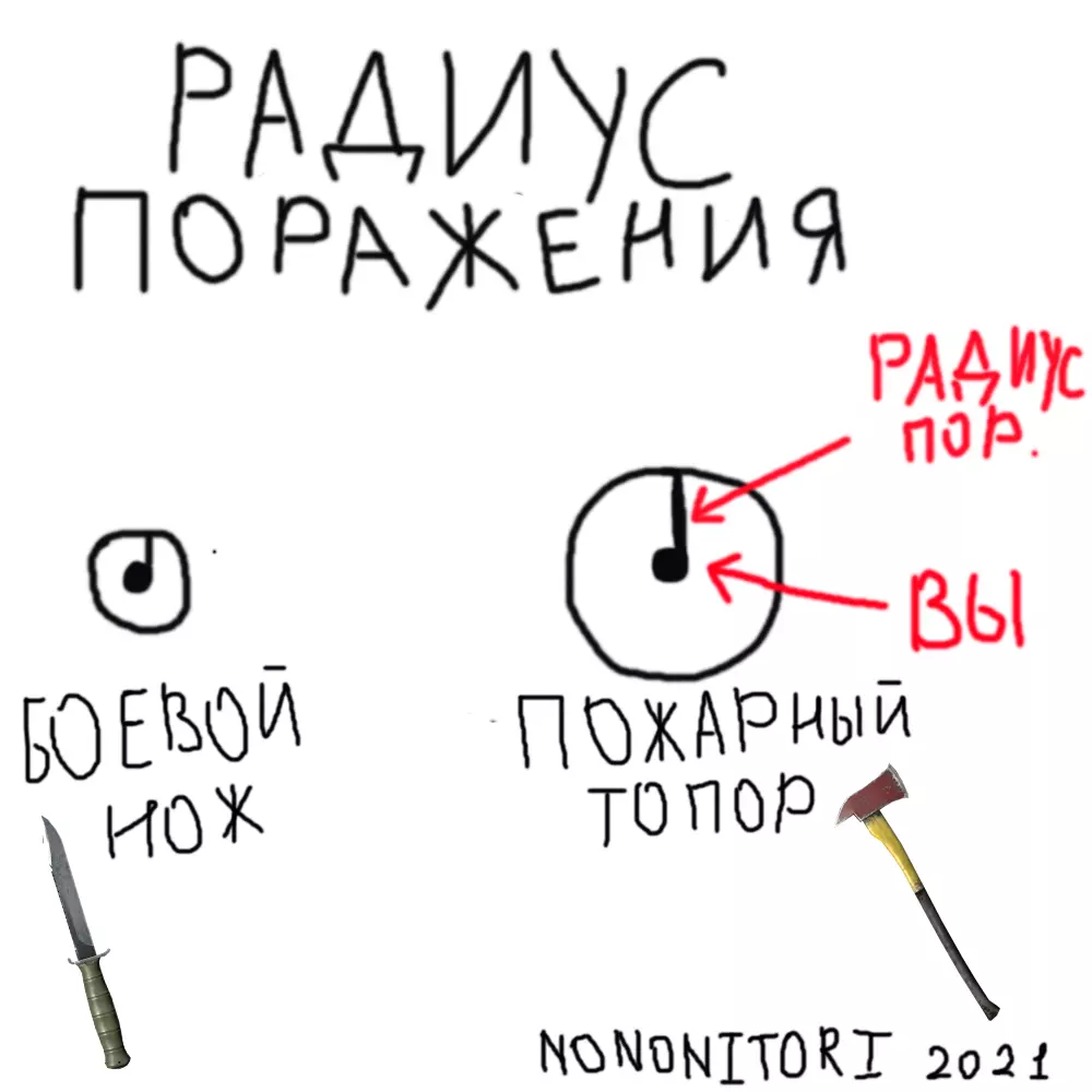 刀具库新增成员。 功能与其他刀具相同: 1. 打开罐头; 2. 切割灌木; 3. 割破衣物; 4. 削尖木棍用于后续的木棍烹饪; 5. 削树皮,将其制成简易引火物或篝火点火器; 6. 肢解动物和玩家尸体(【卫生部】提醒,过量食用人肉可能会让你变成手抖的小丑); 7.如果玩家被绳子或胶带捆绑,小刀可以帮助解救被绑玩家; 8. 用它可以更改重生点。为此,将其拿在手中并按下F11(注意 - 这是致命的); 9. 有助于用内脏制作绳子; 10. 制作钓鱼用的骨钩; 11. 割开麻袋获得麻袋条,这是制作吉利服(Ghillie)所需的材料; 12. 如果你喜欢引人注目,可以制作绷带。为此,请剪开雨衣; 13. 挖掘蚯蚓; 14. 用桶制作篝火; 15. 更快地开门(15-18次打击,而用拳头需要43次); 16. 刮脸。 战斗特性: 伤害 15 强化伤害 20 冲击 17 强化冲击 25 出血 是(100%) 事实与建议 事实与建议。 根据武器的杀伤半径来使用武器。在狭窄的室内使用刀具,在开阔地带使用斧头