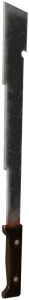 隐藏且危险的武器。 未发现有益属性。 战斗特性: 伤害 15 强化伤害 30 冲击 25 强化冲击 35 流血 无(0%) 砍刀 砍刀、东方砍刀、原始砍刀。