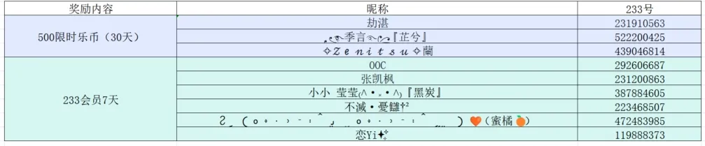 所有参与答题的小洛克中,随机抽取6位幸运小洛克送出惊喜掉落奖,获得233会员7天